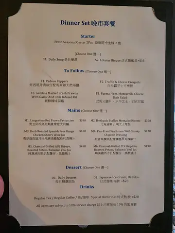餐厅以绿色做主调🧩尽显奢华优雅✨主厨糅合左法式同日式高质食材 烹饪风格贴合现代饮食潮流🍴==============================𝐅𝐨𝐨𝐝 𝐋𝐢𝐬𝐭📌🍽️晚市套餐🦪新鲜时令生蚝 2只 新鲜嘅生蚝真系柠檬汁都唔使已经非常有鲜味😍🍘炸松露芝士可乐饼 有别于一般嘅可乐饼 呢个比较脆口 唔会令你有饱滞感 非常出色😊🥩烤澳洲肉眼扒配薯仔配黑醋烧汁 温度刚好💯切落去感受到个份牛肉幼嫩🔪零油腻感 好喜欢这道菜😊🍰红丝绒蛋糕 是日甜品除咗igable 睇得又食得👍🏻🍲冲绳苦瓜炒豚肉 苦瓜去除咗豚肉嘅油腻感🧈而豚肉亦都去除咗苦瓜嘅青涩味🥒配合一齐系最佳组合🙌🏻🥬炒杂菜 轻轻炒过🍄新鲜嘅蔬菜简单炒已经非常好食✨🐮厚身牛舌串 本人见识小 第一次见到厚到好似牛扒嘅牛舌😲 系要用牛扒刀切真系不得了 好淋好滑😍==============================一试难忘 无论食物质素 环境以至服务都不负所望 完全没有扣分位💯…查看更多