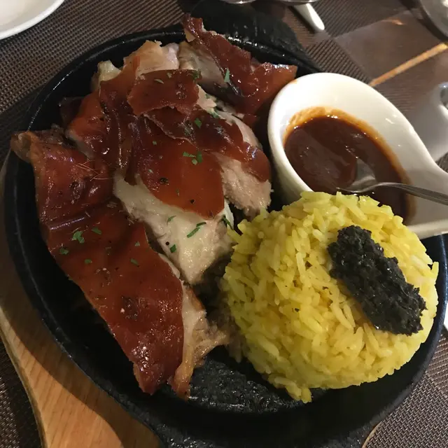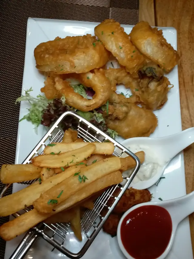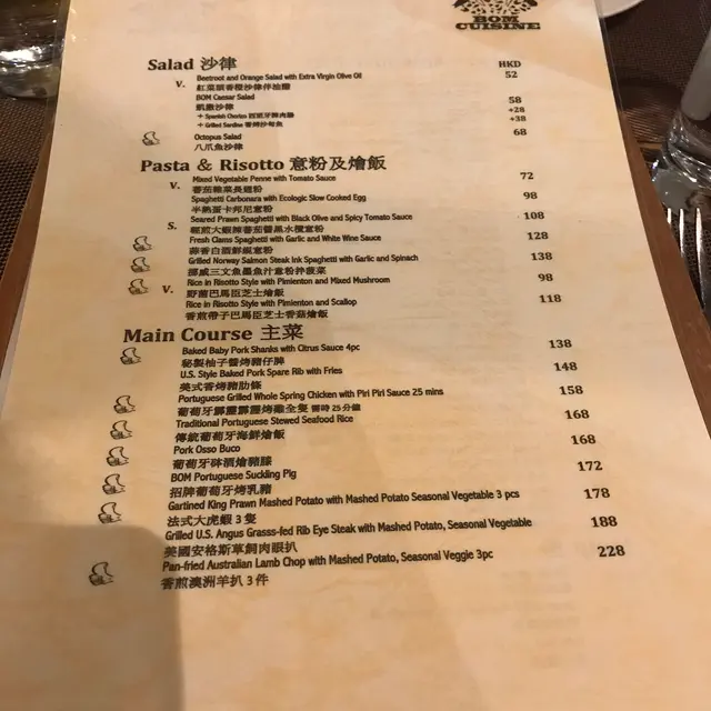 在網上 看著賣點是葡國食物 就想試下價錢不算貴 在可接受範圍內食物中規中距 未有驚喜我同老公 點了3樣野-小食拼盆有馬介休球 洋蔥圈 炸魷魚 炸蠔 炸薯條 只覺得洋蔥圈有水準炸魷魚可以說不好吃 太乾馬介休球 做不出澳門的水準-帶子蘑菇意大利飯呢個算好食 可以一試 蘑菇味算突出-袖子醬豬仔脾都是很著通的 味道不突出 肉質不夠嫩可能我叫既都唔算突出 沒有令我會再幫襯既意慾未去過既都可以試下既服務不錯 帶酒免開瓶費是最大的賣點因為我喜歡飲紅酒