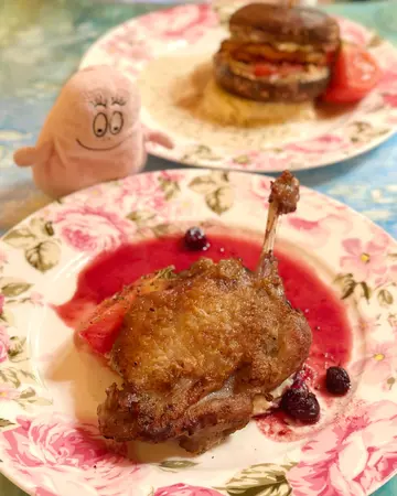 烧鸭髀皮好脆肉质都啱啱好,切开𠮶阵好香烧鸭味涌上鼻,意想不到系佢个红酒汁酸酸甜甜好夹,本身以为食佢会食到好腻,点知反而食菇食到饱左要靠佢个红酒汁开返胃