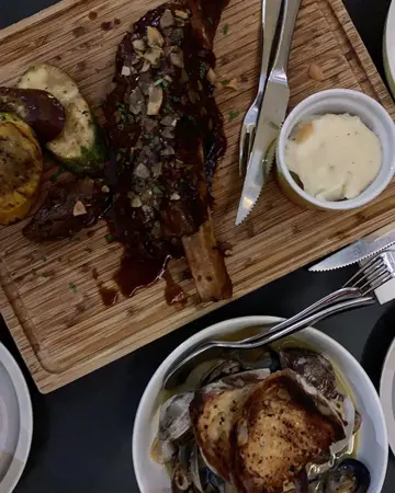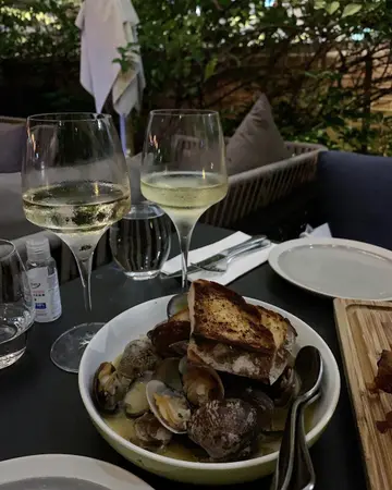 .Finally here for the happy hour and oysters but the oysters were sold out 😭(Love the chill and cozy outdoor area! Pet friendly as well!)又一个happy hour 好地方(买一送一只限自己用,唔可以同朋友share喔),户外环境简约舒适而且宠物友善 🐶 .Fresh clams in white wine garlic sauce was great but slightly too salty蒜蓉白酒煮蚬既蚬好新鲜,不过我就觉得略为咸咗啲啲🥴.Grilled beef short ribs on bone was superb! Meaty, juicy and tender.估唔到咁多肉,而且都好嫩🤩…查看更多