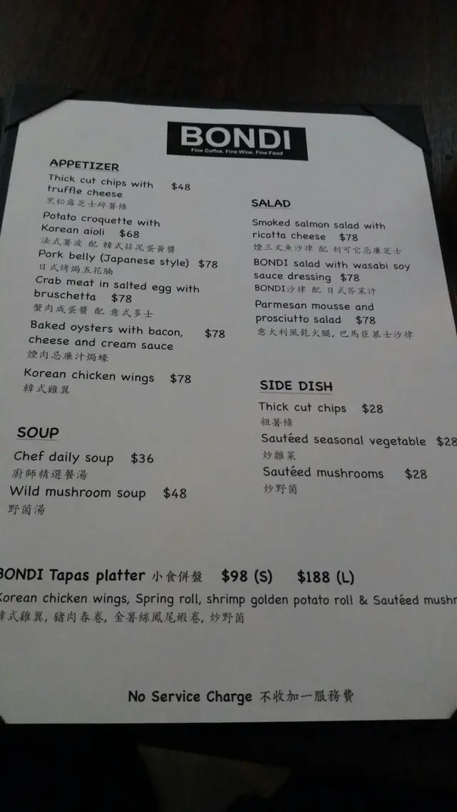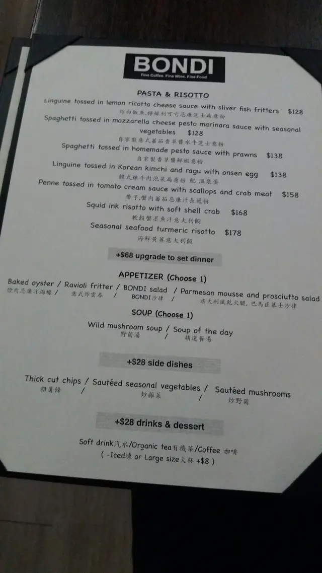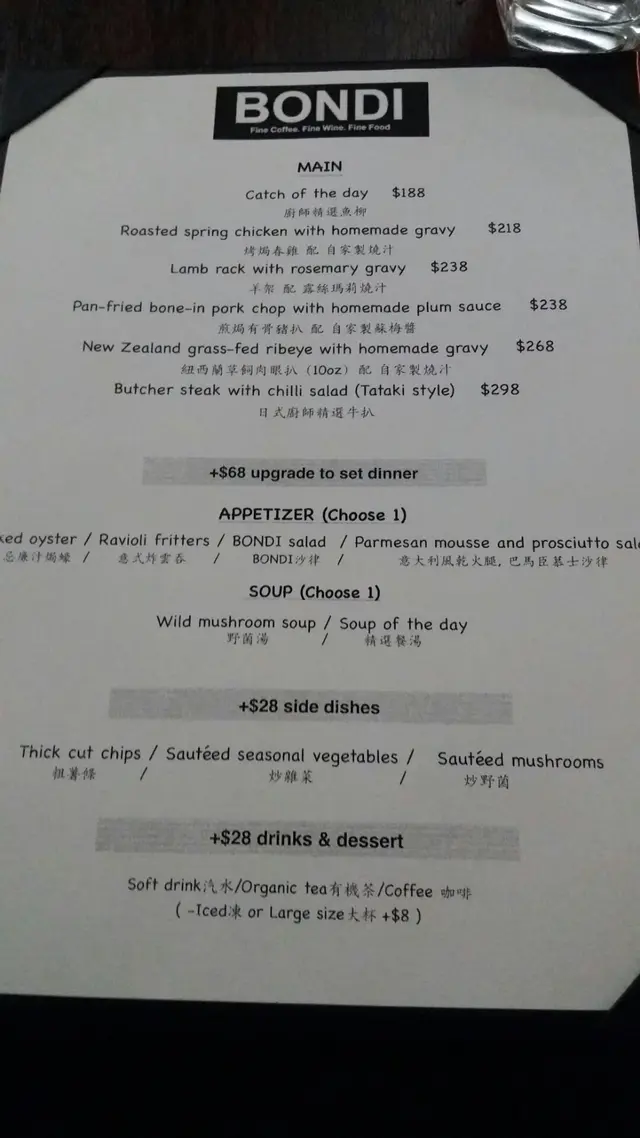去完d2 place行完次次都唔知食咩,通常都係亂行搵間岩心水,咁今次就係地鐵站附近既工廈見到有間叫bondi既西餐廳,咁就上去試下。環境幾闊落又夠靜,幾岩情侶黎食,首先先叫左個湯,好香好有菇味,然後重有個沙律,好足料,有我最喜歡既芝士醬加巴拿馬火腿,我個人就最鐘意食芝士醬,呢個沙律夠哂多醬,生菜同火腿沾左啲芝士醬超好味。食完沙律開左個胃就準備食主菜,咁食西餐就緊係食排啦,叫左個五成熟既肉眼扒,好林,好有肉味,平時食排好驚好乾好難咬,但呢度煎得岩岩好,好好食。最後就係甜品,心太軟,好喜歡一叉落去有朱古力滲岀黎既感覺,而呢度既心太軟甜而不膩,唔錯,大滿足…查看更多
