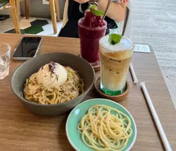 𠮶只狗行开鸭脷洲散步,见到附近Percy Fanny嘅餐厅得呢一间,所以就试试佢餐厅半开放式,即使带住狗狗都可以选择坐室内,但系因为当天天气都清凉,所以我哋拣咗坐室外嘢食嚟讲, 会觉得饮品系做得唔错嘅嗌咗杯Berry smoothie都10分足料 系饱肚㗎另外屋企人嗌咗杯好似系mint latte咖啡味香浓,但有少少薄荷清新凉浸浸嘅口感,好得意但系个意粉就唔系好啱我口味,我哋嗌咗黑松露水牛芝士意粉俾咗成嚿Mozzarella,所以奶味好香浓不过略嫌有啲漏 同埋黑松露味唔系好出但系overall体验都OK嘅,因为店员都对狗狗好友善我哋order意粉之前问店员 可唔可以额外煮开少少意粉比狗狗食 佢哋都好帮到手另外都主动俾零食只狗狗,等佢唔使惨惨望住我哋自己食