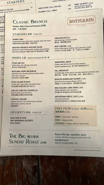 Starter (Sharing dish per head)Seared Tuna Roasted chicken and avocado SaladCrab deviled eggClassic Bruch 💰$198 /setwith Starter,Main Course ,Desert🤩🤩Pair with wine (buy 1 get 1free) from12pm to 7pm👍🏻Boticario Short Rib Burger with fries 😍Favourite fries even its thin but have a good texture.Ordered medium well of Argentinian short rib which juicy and big size 😍Steak and Egg 🧆🍳🍟Medium well also but not over cooked , smoky and grill smell tasty good😋😋Dessert (sharing dish per head)Tiramisu + Yuzu cheese cake surprise on both cakes , not too sweet but good even I don’t like tiramisu buy 1 get 1 free drink order Sparkling Posseco 💰$88Good view, enviornment, food, sevice 👍🏻😍👍🏻😍will come again …Read More