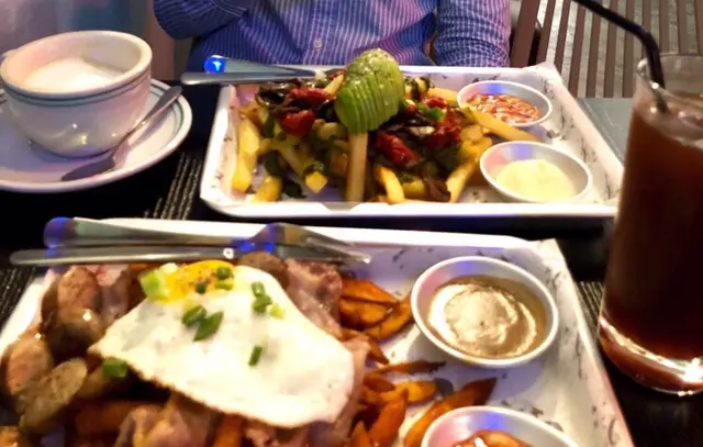 前兩日同朋友去深水埗買d手工野,行下行下大家都累搵左間cafe坐下,見呢間個樣既優雅,就入黎試試啦,3點幾鐘,我地2個全日都無食野,叫左餐牌裡面唯一2個正餐,一個meat,一個vegetrian既all day breakfast~我就叫左蕃薯條,朋友叫左薯條太陽蛋,一黎到估唔到咁大兜,成個鐵盤都係薯條底,如果係粗果隻既話仲正😍vegetrian果個有成個牛油果係到,meat果個就有好多腸呀煙肉咁,如果唔係同朋友黎,食一個餐既配料雖然好多,但係會好dry,每人叫一個唔同款就岩岩好喇😆😆2條友,坐到5點幾鐘先走,其間見到好多熟客仔係入面同老闆傾計,咁又係,附近都好少有呢d用心既小店 …查看更多
