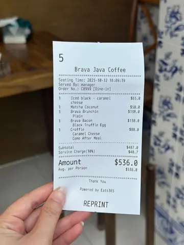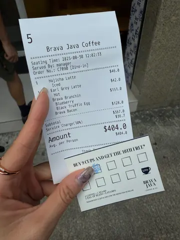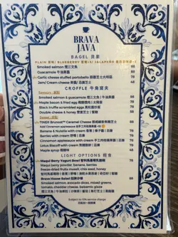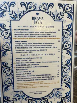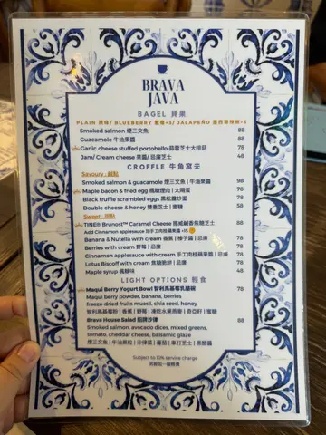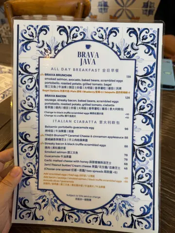 ✨Blingbling 美食推介📍 元朗BRAVA JAVA COFFEE & CO.🌟元朗必到花砖cafe🌸💠💠💠💠💠💠💠💠Weekend好多时都会系大西北~ 通常时间都好松动所以会周围揾食☺ 之前睇中左Brava Java, 一直都未有机会黎,见今日同男朋友一齐就黎试试啦💓 本来唔想烦想泊停车场,点知男朋友随口话睇下有无咪表位先,点知一去到附近既咪表位竟然有车走!!超级好运😆 特此一记haha💓💓Brava Java既花砖好靓💓超级钟意呢度既decor~ 虽然食物种类唔算多,但今日就系为左个all day breakfast而黎~ 所以我地一人一份早餐同饮品~🌟𝔹𝕣𝕒𝕧𝕒 𝔹𝕣𝕦𝕟𝕔𝕙𝕚𝕟 $138Smoked Salmon, avocado, baked beans, scrambled eggs, Portobello, roasted potato, grilled tomato, bagel- Bagel +$3 转左 blueberry bagel- Scrambled eggs +$10 转左 black truffle scrambled eggs成份早餐好colourful, 仲有d沙律菜~ 全部都系我钟意食既toppings~ roasted potato我个人觉得可以再烤得表面再脆d,其他都好唔错~ blueberry bagel会heat左就搽一层cream cheese,好夹好好味☺ it's exactly how I want it to be 💓另外,有个小插曲,系我想比男朋友试下个bagel既时候,点知sin手整跌左个bagel。。。wuwu。。。本来想另外叫返一个bagel食,因为我超钟意,点知staff劲好,佢话送返个比我🥹🥹🥹 好感动🥹🥹🥹 好多谢你地☺☺🌟𝔹𝕣𝕒𝕧𝕒 𝔹𝕒𝕔𝕠𝕟$128Sausage, streaky bacon, baked beans, scrambled eggs, Portobello, roasted potato, grilled tomato, ciabatta呢个其实同我个份toppings大同小异~ 不过好想highlight ciabatta~ 外脆内软,heat完暖暖地,超好味☺☺🌟Hojicha Latte (Iced) $46🌟Earl Grey Latte $422杯tea latte都好浓,好好味~ 下次试下Brava既咖啡~🌟项目评分环境气氛 💎💎💎💎💎/5服务质素 🌸🌸🌸🌸🌸/5食物质素 😋😋😋😋😋/5性价比 💰💰💰💰💰/5💎每买一杯咖啡/茶就会有一个印花,储齐9个,第10杯免费架!…查看更多