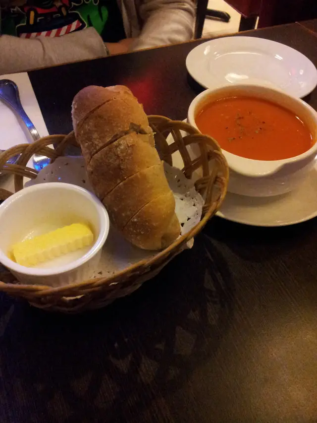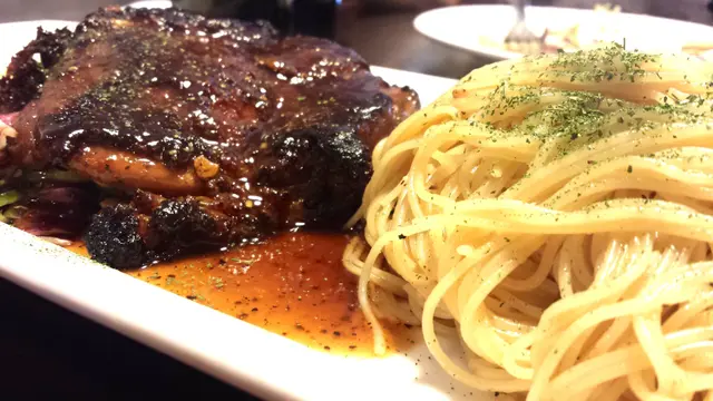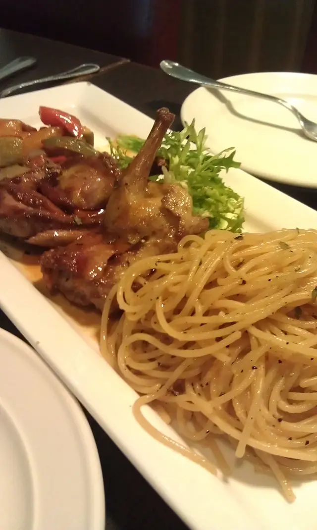 黑椒雞扒第一眼望落去,好深色,好似好油咁,有點兒恐怖。食下去味道出乎意料的好,雞扒其實煎得不錯,幾香幾嫩,只是醬汁深色而已。油的確偏多。天使麵用黑椒煮過,很香,但偏乾,煮完放凍了變得黏成一舊舊,碰巧和雞扒平衡返。友人的意粉,份量又是超大的。賣相不錯,有不少青口和墨魚仔,用料不吝嗇。色,香俱備,味道就要留待下次去試了。還有見過最大杯的凍檸茶。吃足兩小時,好像只有兩枱客人,讓我們可以靜靜地傾計聚舊。人客不多,店員都不太忙,服務不錯,而且上菜很快。這價錢,有這樣的質素和份量,實在超值,值得推介。…查看更多