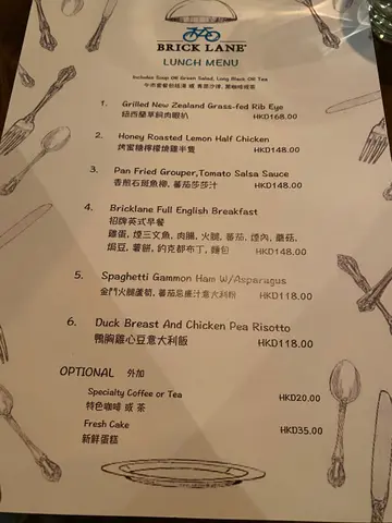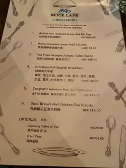 还记得读书时期已经听过走英式路线的Brick Lane,时至今日品牌依然存在,今天终于可以一试。本以为餐厅只有单点餐牌,原来也有午市套餐供应,价钱比单点实惠,而对个人来说餐牌上的食物也很吸引。与沙律中我选了餐汤,是日款式为甘笋忌廉汤,喜欢餐汤非常够热,红萝卜味香甜,适量的忌廉令口感更滑又不会太腻,而旁边的脆面包香脆好吃,跟餐汤很夹;个人觉得加入适量的黑胡椒更能带出餐汤的风味,然而为这顿午餐开了一个不错的头。个人比较贪心所以要了一客招牌英式早餐($148),胜在可以一次过尝到不同的食物。约克郡布丁松软不油腻、沙律菜清新新鲜、薯饼香脆、把跟餐汤配有一样的面包沾著水波蛋汁吃十分满足。不过有部份食物的表现则比较逊色,例如烟火腿太咸、烟三文鱼的质素不佳,对于两者都建议餐厅需检讨一下来货;但整体上食物均有用心制作,难怪多年也屹立不倒。餐饮跟配茶或美式咖啡,加$20可升级至其他大部份的饮品,而我的牛奶咖啡表现正常,食物质素的印象比较深刻。餐厅的环境宽敞,有些食客在这里跟朋友相约聊天,又有客人在工作,感觉这里是一个不错的空间,加上食物的表现,绝对可以回头