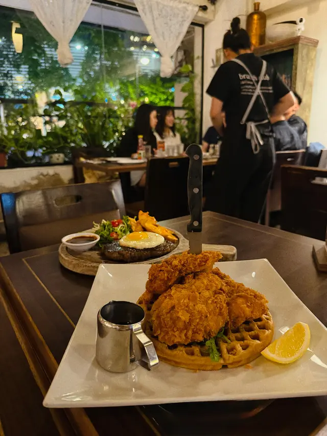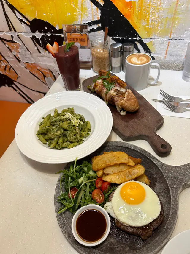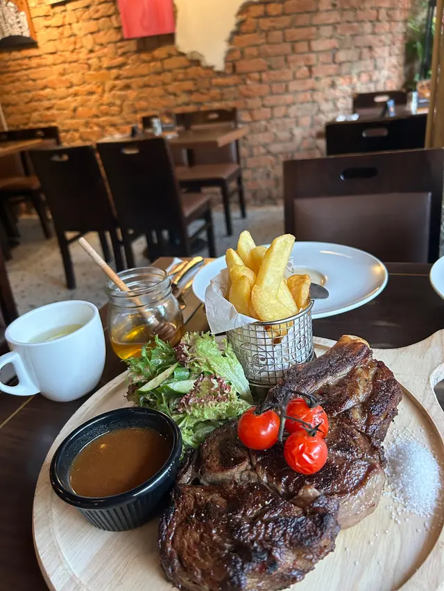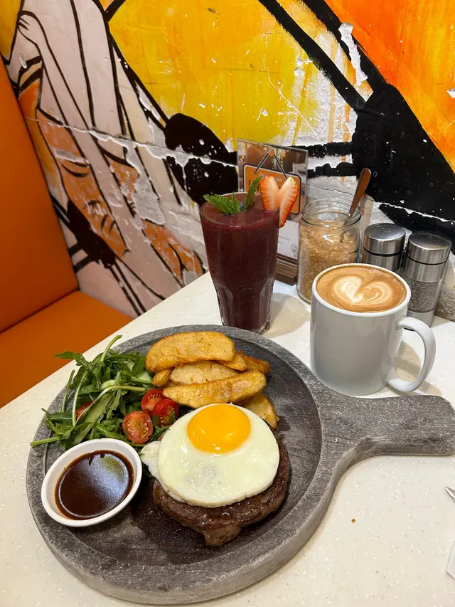 之前上網見有人推介呢間餐廳,話班尼蛋同埋牛扒好好食,於是就上去試吓,但幾失望,仲要係女朋友生日飯我同女朋友就淨係叫左班尼蛋同牛扒,首先上菜既係班尼蛋,唔知係咪啲沙律菜有水,搞到班尼蛋個麵包濕嘅,食落去有浸生水味,唔討好牛扒就正常味道,不過不失,叫咗個七成熟,唔難食,但亦唔要特別好味,肉質係唔差嘅,但又唔會令你留下深刻印象!由於訂枱嘅時候都有講慶祝生日,所以餐廳都好好咁送咗個蛋糕俾我哋,係傳統嘅紅蘿蔔英式蛋糕,女朋友對呢種蛋糕麻麻哋,我反而還好,不過蛋糕好漏好滯!環境係唔錯,不過我相信唔會再係第二次…查看更多