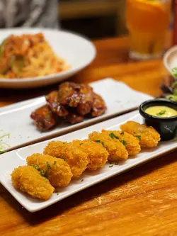 有时生活忙到唞唔到气,谂住揾个地方好好食餐饭放空一下,去咗Bubble Tree一入到已经觉得好疗愈!老板话「Bubble每一个泡泡代表每一个希望,Tree就系由细苗长成大树嘅过程」,原来呢度唔单止系餐厅,仲系一棵充满希望嘅大树,等你喺现实窒息嘅时候,嚟到树下透一透气~🫧🍝 韩式辣汁海鲜意粉配烟三文鱼辣汁够惹味但唔会太抢,海鲜同烟三文鱼鲜甜到爆,意粉吸晒酱汁,一啖接一啖完全停唔到,食落好满足!🍄 新鲜杂菌配黑松露忌廉汁意大利饭黑松露香气四溢,忌廉汁creamy又顺滑,杂菌鲜嫩多汁,饭粒弹牙,推介~🍗 水牛城鸡中翼辣得过瘾但唔会太烈,肉汁锁得住,一啖咬落即刻醒神!🦪 吉列牡蛎配蜂蜜芥末酱啲蚝好肥美,炸皮金黄酥脆,一定要点埋蜂蜜芥末酱甜酸平衡,一食即刻觉得世界又美好返~💡 忙到想喊嘅时候,就嚟呢棵大树下坐一坐,食餐好饭,充电完再出发啦!…查看更多