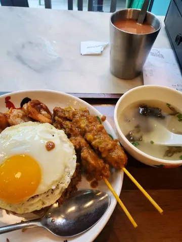 Lunch 迟放了正好来个下午茶餐在D2place 走了一圈选了这间试一试❤️马来汤面鸡串图片看着很丰富实物的而且确跟图片一样一汤面,两鸡串,一杯嘢饮参峇酱另上,可加不加份量对女士来说刚好推荐鸡串