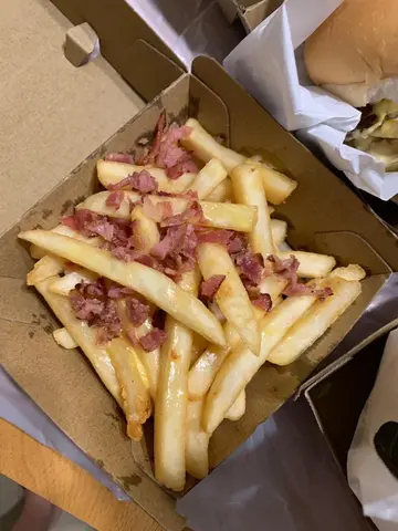 放工去买汉堡,门面唔大,有少量位置提供堂食叫左两个套餐经典牛肉芝士汉堡配炸鸡翼加汽水牛肉喺自家手工制,好似都几吸引,每次食唔同餐厅嘅汉堡,都会试餐厅经典款先影相技术有啲差,影唔到块牛肉同芝士🙈,不过见到有好多菜喺个包到因为外卖拎到番屋企唔算好热,味道都正常,牛肉味唔算好突出同唔算好Juicy如面包可再烘耐少少应该会更好本身以为有四只鸡翼,原来喺将鸡翼一分为二😂,咁样容易咬,几方便食。鸡翼份量少左啲芝士原只软壳蟹汉堡炸芝士烟肉薯条加汽水另一个就喺软壳蟹汉堡,入面仲夹住完块蕃茄加太阳蛋同生菜好足料,软壳蟹有少腥外卖焗咗一阵薯条淋身咗啲,不过芝士配烟肉喺绝配整体价钱味道都正常,可以做得更好!…查看更多