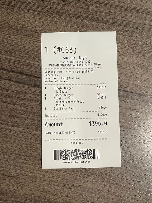 Burger Joys (君悅居) (湾仔) 网上订位即赚Rice Dollars 网址: https://s.openrice.com/QrLS07zO300 地址: 香港灣仔駱克道42-50號君悅居地下E號舖 电话: +852 63736668