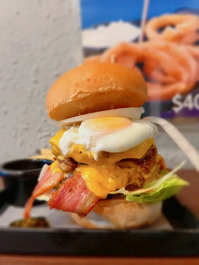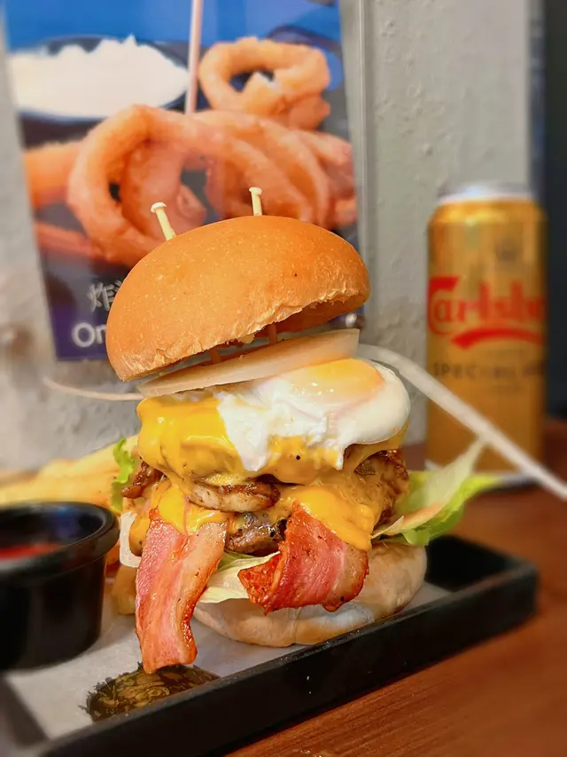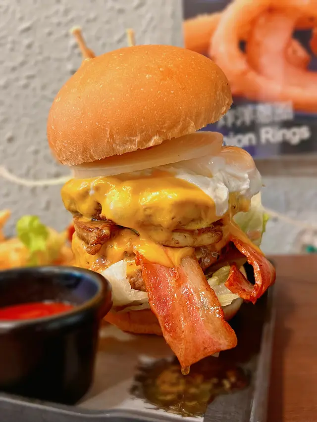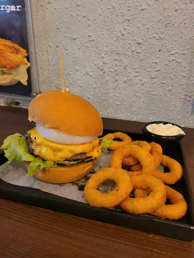 經典牛肉漢堡加洋蔥圈