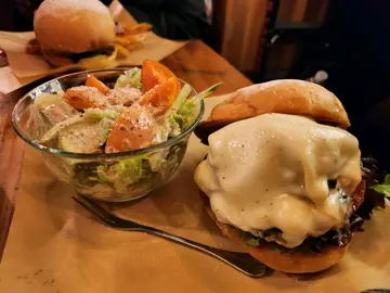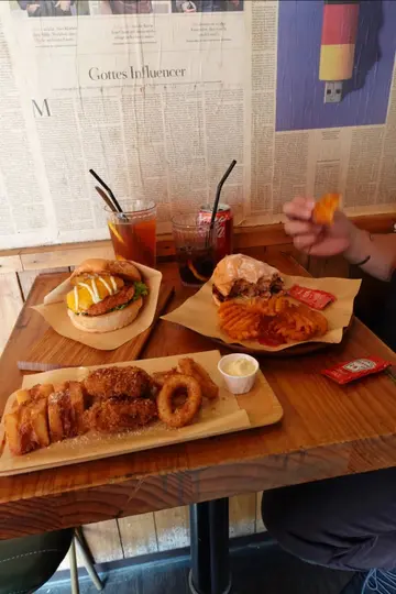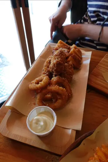 终于又过返周末出街周围都系人嘅日子,难得去荃湾其实本身系想食同一条街另一间排长龙嘅餐厅,点知条队真系长得太恐怖,果断放弃。见到呢间burger都有唔少人排,同伴都话有人介绍过好食,所以就决定排队,当时前面有5组人左右啦,都ok的。企定定上网search下,先发现原来今个月尾就结业了(´Д` )估唔到第一次食就系最后一次,所以决定叫多啲野试下!•牛肉芝士汉堡 Lunch Set•香芒手打虾堡•小食拼盘(奇脆虾多士x4+吉列广岛蚝x3+香脆鱿鱼圈x4)Burger唔错,但惊艳嘅系小食拼盘!Openrice竟然冇人讲🫠虽然太迟但都等我讲吓!佢个虾多士虽然其貌不扬但超级好食!!!夹心虾胶大大旧超弹牙又重虾味,我觉得仲好食过虾堡🙈重点系bite size食得好轻松又冇负担,我可以食多一份🤣之后广岛蚝炸得超好味,酥脆之余完全冇腥味,大推!!鱿鱼圈相比之下冇乜特别,但都系炸得好好食,唔干,沙律酱有加分!另外仲有杯冻柠茶都好好饮😋希望将来有机会再食到,见到似乎有好多熟客专登黎道别,真系实力嘅证明。…查看更多
