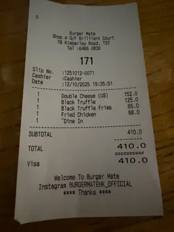 一想食Burger,就谂起#BURGER MATE 🤘🏻你食过佢既包系会有记忆点⭐️位于尖沙咀,工业风装修,几有feel,就系卖Fresh Natural Handmade Burger🍔就系卖新鲜,每日自家制面包同牛肉,限量200份,930前就卖晒!🤩美式传统汉堡,流口水了🤤黑松露孖宝🫶🏻BLACK TRUFFLE MUSHROOM BEEF 黑松露蘑菇安格斯牛汉堡🍔USDA PRIME🥩好靓既卖相,黑松露超香,一啖咬落去,最正都仲系个包,比一般汉堡松软,真系好味👍🏻加埋黑松露汁好夹好正🤩洋葱、酸瓜都好味😋BLACK TRUFFLE FRIES 黑松露薯条,粗薯条香脆,加埋满泻既黑松露酱,好满足嘅感觉🤘🏻佢既黑松露实在正😵SIGNATURE DOUBLE BEEF CHEESE 双层安格斯牛汉堡🍔好爆既摆盘,双层牛好癫🥺爆汁爆芝士,大大份🤞🏻安格斯牛厚身浓肉味,加埋芝士无得输🤤饿底必食,FRIED CHICKEN日式炸鸡粒,香脆惹味,鸡肉都好滑,高质🤞🏻日日新鲜制作手工汉堡唔容易,净系依份坚持都值得支持💪🏻食得出既新鲜同特色,食材高质又有心机,无得唔帮衬多几次💋…查看更多