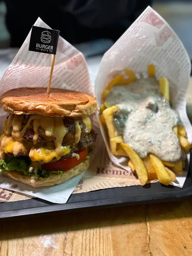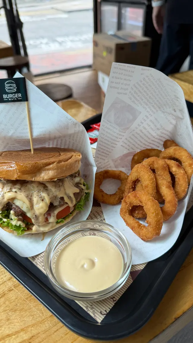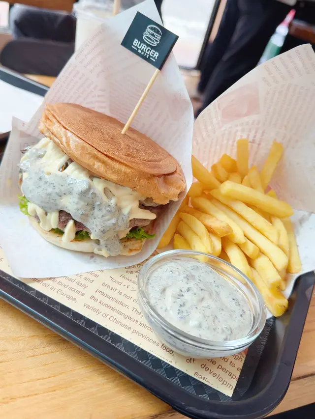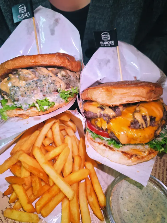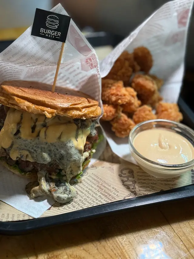 🎀尖沙咀。每日限量200個 即製牛肉漢堡🍔🎀🪄店名* #BurgerMate🔮地址*尖沙咀金巴利道78號金輝閣地下A號舖 🔮🗾分店地區🗾 沒有分店💰價錢$336 (2人)➖➖➖➖➖➖➖➖➖➖➖➖➖想睇更多同區推介👉地區搜尋🔍🗾#pickyme_尖沙咀剩系食呢一類👉食物類型搜尋🔍🍜#pickyme_西餐➖➖➖➖➖➖➖➖➖➖➖➖➖🍔 餐廳環境Burger Mate位於尖沙咀金巴利道,店鋪雖小且僅能容納少量顧客,但充滿工業風裝修風格。開放式廚房不時傳來煎烤牛肉的香氣。外籍店主態度熱情,能流利使用英語和國語與顧客交流。🍽️ 食物質素餐廳主打每日新鮮手工製作的漢堡,從麵包到安格斯牛肉漢堡扒均為自家製作,每日限量200份,通常會在晚上9點半前售罄。漢堡如黑松露蘑菇安格斯牛漢堡肉汁豐富,搭配鬆軟的自家製麵包,風味傳統而高質。👀評分💖💖💖💖💖🪄Premium Australian Wagyu $130🪄Black Truffle Mushroom Beef $125🪄Soft Drink $36這次品嚐餐廳兩款招牌漢堡,漢堡選用優質牛肉,在鐵板上煎得恰到好處。酥脆的麵包,加上豐盈的肉汁,牛肉油脂香氣濃郁但不膩。我個人推介可試黑松露蘑菇牛肉漢堡,打開便能感受到濃郁黑松露香,蘑菇的份量多得要滿溢出來,每一口都能品嘗到菌菇及黑松露香氣,與牛肉漢堡配合得很好。👀評分💖💖💖💖💖🪄Fries$45採用粗切做法,炸至金黃酥脆,內裡的薯肉保持綿密口感。(5個💖為最高)✴️✴️✴️✴️✴️✴️✴️✴️✴️✴️✴️✴️✴️⚜️整體評級⚜️🎈味道評分*😋😋😋😋😋🎈環境質素*🎇🎇🎇🎇🎈抵食程度*💰💰💰💰💰🎈服務態度*💌💌💌💌💌…查看更多