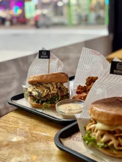 Burger Mate係我近期食過最有驚喜既漢堡小店之一!🍔🍟無論係食物質素定環境,都展現到職人精神,難怪社交平台都咁多人討論!🥳落Order時老闆仲話每個漢堡用大約200克牛肉去整漢堡扒,又推薦我試下炸雞粒加秘製醬汁,對自己出品信心滿滿咁話😁🍔黑松露蘑菇安格斯漢堡黑松露醬夠香又突出,炒香左既蘑菇帶返啲鮮味,配上厚厚多汁,又份量十足既安格斯牛肉,同芝士流心感覺爆棚!材料多到一口咬唔晒😂每一口都feel到層次豐富,但完全唔會膩🍄🍔瑞士芝士安格斯牛漢堡芝士控必食之選🧀咪以為瑞士芝士會較淡口,意想唔到比車打芝士更濃芝味~溶化後包住牛肉,啖啖都咸香,有夠creamy,牛肉本身肉味香濃又唔乾,配菜份量啱啱好,唔會搶去主角風頭~🐓日式炸雞粒外脆內嫩,勝在唔油膩,配埋店主自豪嘅「Gordan Ramsey秘方」醬汁,微酸微辣,幾有驚喜感覺🍗🔥🍟黑松露薯條薯條炸到金黃香脆,外層黑松露醬香到食落有啲邪惡,但又停唔到,煙韌度啱啱好,做side dish都好搶戲✨🍻 Suntory Premium啤酒配返杯清爽Suntory Premium啤酒,入口細滑又解渴,balance番炸物嘅油膩,Happy Hour約friend嚟真係一流!舖頭位置唔多,但客人流動快,唔怕等位~整體絕對值得再訪,推介俾一眾漢堡控同炸物愛好者💜…查看更多