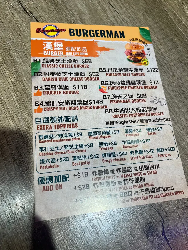 Burgerman (埃華街) (大角咀) 网址: https://s.openrice.com/QrLS0zq6100 地址: 香港大角咀埃華街95-97號地下C號舖 电话: +852 44280641