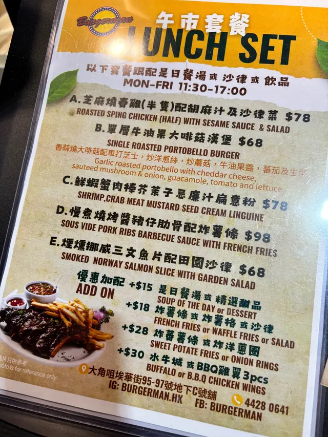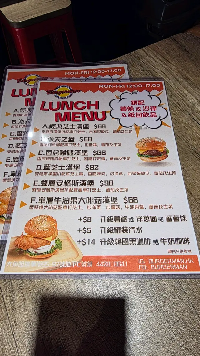 Burgerman (埃華街) (大角咀) 网址: https://s.openrice.com/QrLS0zq6100 地址: 香港大角咀埃華街95-97號地下C號舖 电话: +852 44280641