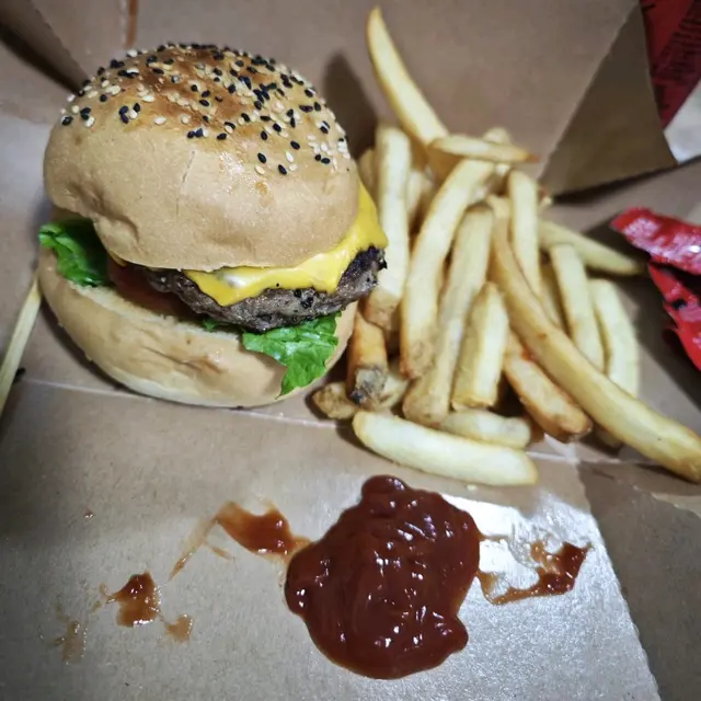 🍔經典芝士漢堡 $68爆汁嘅burger漢堡肉真係超級多汁XD🍔鵝肝安格斯漢堡 $148糾結左好耐結果揀鵝肝burger麵包有牛油烘香同脆(*´˘`*)♡漢堡肉厚肉得誇張(´°д°`)都係好juicy好大塊鵝肝ԅ(,,´﹃`,,*ԅ)漢堡肉味道較鵝肝搶不過細味仍然有鵝肝香(˶‾᷄ ⁻̫ ‾᷅˵)同埋漢堡肉睇落有啲紅不過我地食完無事!🍟加配小食 $18薯條/薯格/洋蔥圈我地揀左薯格份量好多熱氣但炸到好脆好好食(-´∀`-)洋蔥圈都好好食有洋蔥甜味٩(ˊᗜˋ*)و嗌漢堡送飲品揀左百事無糖生可樂First try 生可樂成日等潮流過左先試( ¯•ω•¯ )真係多氣啲( ¯•ω•¯ )餐廳擺設放左三隻chiikawa 著burger嘅公仔好!得!意!Good Taste (。•̀ω-)店員姐姐/妹妹好好人!見我地係chiikawa fans送chiikawa飯素比我地然後自助醬料區有林家謙應援發現大家都係林家謙fans(´∀`*)食完我地傾左陣XD見多人可能難走動主動問有冇人需要茄汁仲送洋蔥圈比大家食(。>_<。)♡好有溫度嘅一餐(´,,•ω•,,)餐廳仲要有做汽水罐回收(;´༎ຶД༎ຶ`)好難得請大家多多支持小店♡♡♡…查看更多