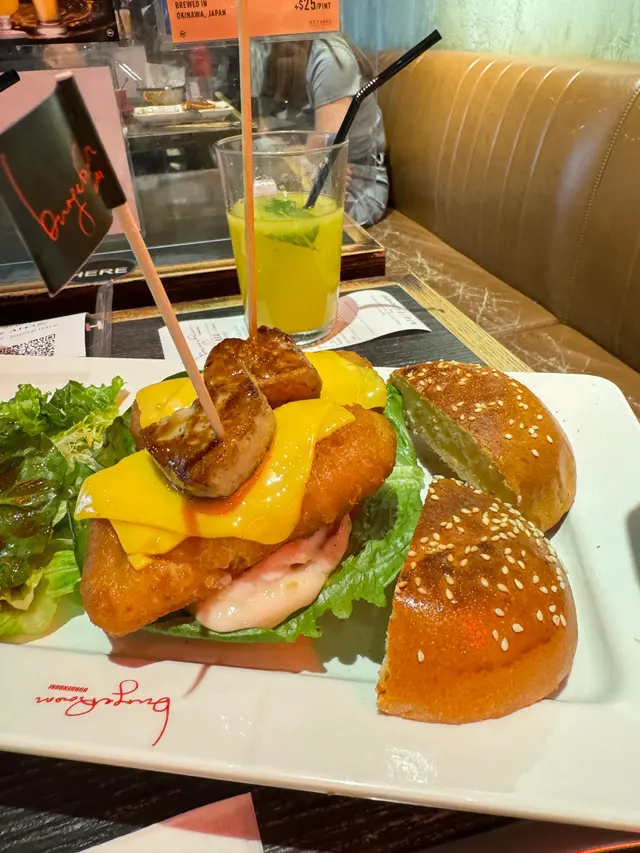 尖沙咀一間食漢堡嘅舖頭🍔🍟🍗我覺得佢嘅質素對比差唔多價位嘅連鎖店例如Shake Shack /Five Guys好上唔少😂 店舖裝修工業風,放工同同事過嚟飲嘢食嘢肯定好chill,我去到嘅時候已經過咗lunch time,唔使同人迫~菜單有非常多嘅選擇,可以自由砌一個心目中嘅burger出嚟,嘢食方面點咗杯菠蘿梳打,一杯好正常嘅菠蘿梳打😂如果份量再多啲就好另外點咗份雞翼,望到張相都知正,成隻雞翼炸到金黃色,但又唔乾身有肉汁👍🏽👍🏽至於主角burger,其實點之前真係用咗好耐時間諗,因為又想食雞又想食牛又想食魚,無奈得一個人,試唔到咁多嘢,最終揀咗個鱈魚鵝肝漢堡。鵝肝芝士鱈魚柳呢個組合真係冇得頂,成個味道好match,入口即溶,仲有塊蕃茄可以解膩,而兩塊包亦都冇話俾食材嘅汁整到濕晒軟晒,呢點好評。而伴隨漢堡嘅仲有沙律同薯條,所以食物份量方面係絕對夠👍🏽👍🏽…查看更多