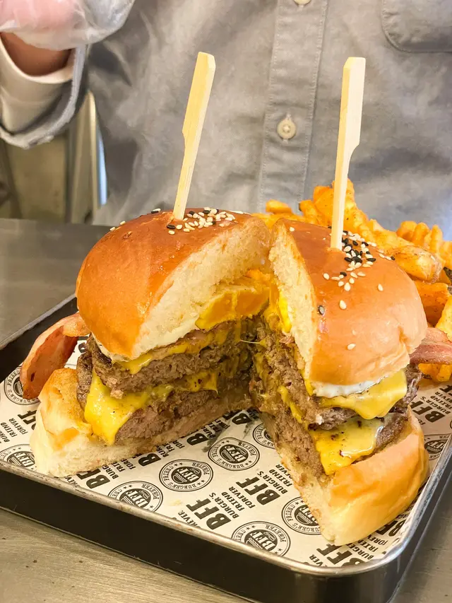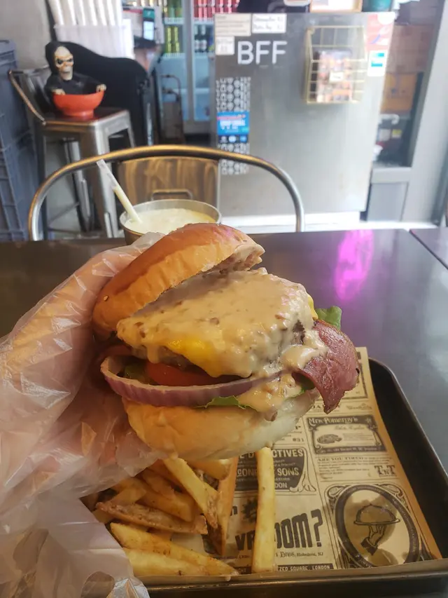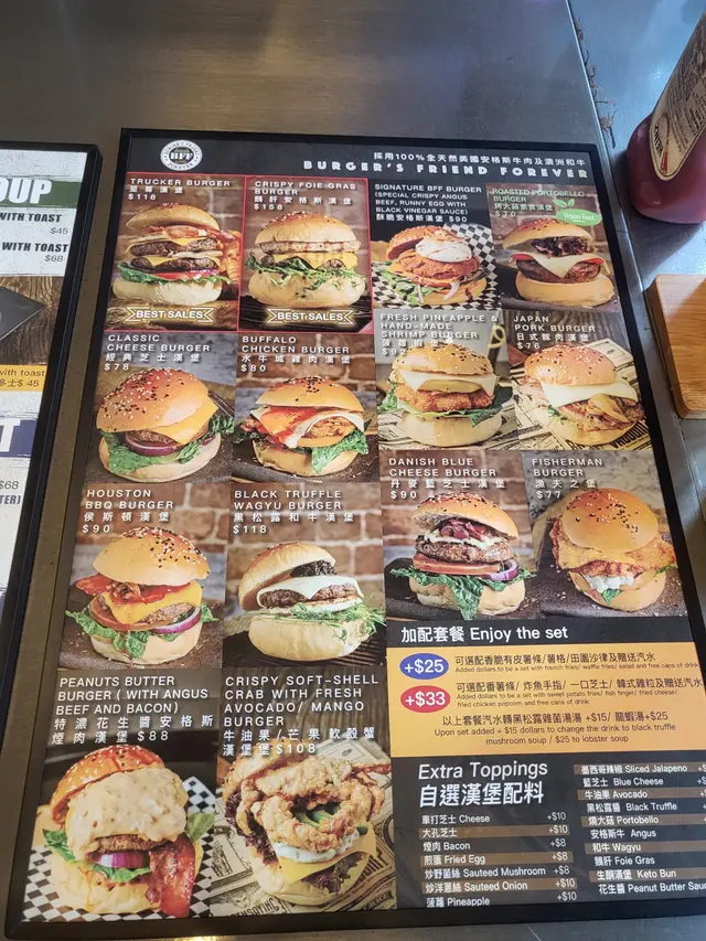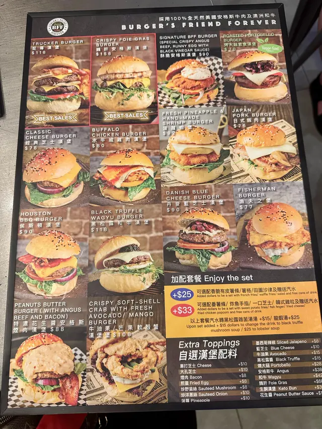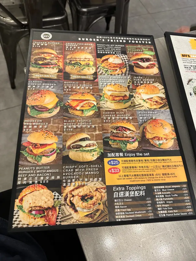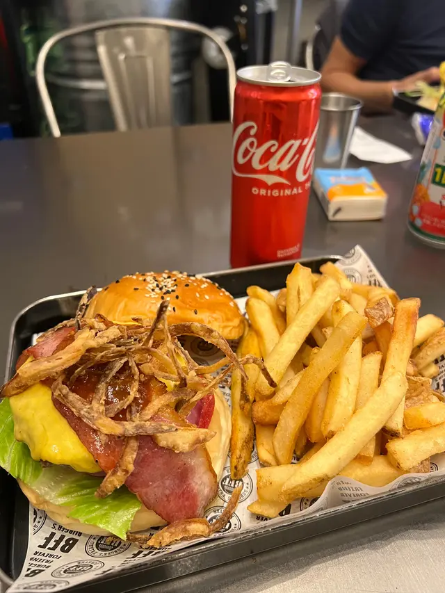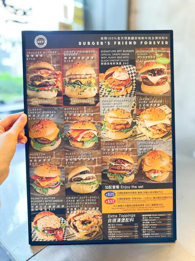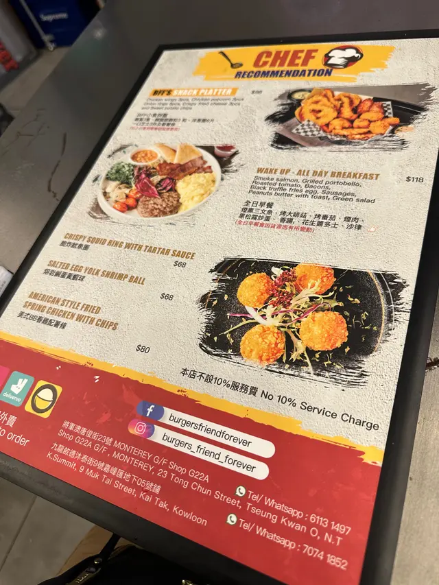 作為將軍澳居民,諗食乜都諗爆頭。唔想餐餐食連鎖,搵間小店?想高質又貨真價實?行出海濱,都有幾個好選擇。今日就去咗食burger!! Monterey 愈來愈多小店,係donki個商場沿地下左手邊直行,經過一排舖仔,就見到burger’s friend forever。店面唔算大,大概得5,6張4人枱。Burger選擇有14款,包括牛雞豬魚,種類算多。另外,生酮朋友有福,有生酮包 蛋糕同曲奇揀。如果唔想食burger,仲有意粉 小食選擇。#至尊漢堡貪心鬼揀咗個最大嘅,同朋友一半share。兩層牛肉,兩層芝士,再加煙肉同蛋,底下有菜同蕃茄,上菜時震撼咗我。超大個超厚!擘大口肯定一啖都食唔晒!牛肉好juicy,唔會柴枝咁乾,加上烤洋蔥汁,一邊咬一邊漏汁,煙肉同蛋幫佢加咗另一個層次,漢堡包包皮有焗香,少少脆口。另外仲加咗一份小食,叫做炸魚手指。初初以為一定係普通嘅鱈魚手指,點知原來用魚柳做,揸得好香脆,而且冇雪藏味,我相信佢哋嘅魚柳包都應該會好好食。餐飲升級左做蜜糖香蕉雲呢拿奶昔雲呢拿味好重,而且好香滑,有少少香蕉蓉,加上蜜糖,成件事非常夾。邪惡到極點。查看更多