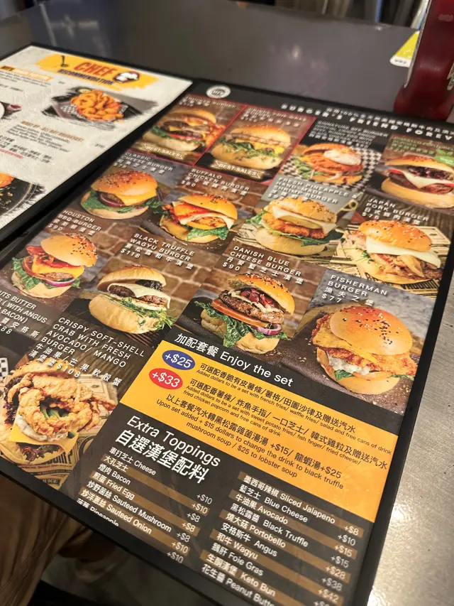 喺Monterey條食嘢嘅地方其中一間漢堡包店裝飾美式夜晚經過嘅時候因為有霓虹燈所以都好易搵到入到去有少少小插曲因為喺網上OpenRice已經預付 但店員可能試過經歷 所以就用咗啲時間 之後解決咗都好快有嘢食喺OpenRice度訂咗==工業風滋味漢堡組合二人套餐==漢堡BURGER: (OpenRice度寫炸魚手指及薯條,但係當時只可以俾我哋每樣揀一個)黑松露和牛漢堡 配薯條🍟漢堡包皮有用牛油烤過和牛好Juicy 和牛上面嘅芝士就冇咩點溶芝士同黑松露配和牛個感覺分開咗但係整體個牛都幾好食粗薯條熱辣辣新鮮出爐 仲有味粉 所以幾惹味菠蘿蝦堡漢堡 配炸魚手指菠蘿都好大塊 蝦堡都好厚身炸魚手指略嫌粉太多 魚嘅部份唔多飲品DRINK:配百香果梳打(2杯)都多百香果粒 味道冇咩特別 正常可以想像到嘅味道舖頭仲有好多唔同食物嘅選擇,包括漢堡意粉小食等,都可以試一試查看更多