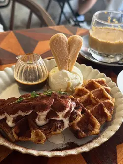 好日都唔入元朗国一转入嘅话 梗系要揾下啲好嘢食吓呢个蟹肉蟹籽明太子忌廉意粉真系无得顶一嚟到已经好香蟹味 每条意粉都挂满汁加埋咁多脆卜卜蟹籽拌匀 层次好丰富份量又大每一啖都好满足 超正!然后个tiramisu croffle 又系正croffle 外脆内烟韧 加上cream 同雪糕 冰火交融咁两件唔够食啊喂!啲drinks又好别致 系到食嘢chill 都几写意但预咗要排队㗎😂…查看更多