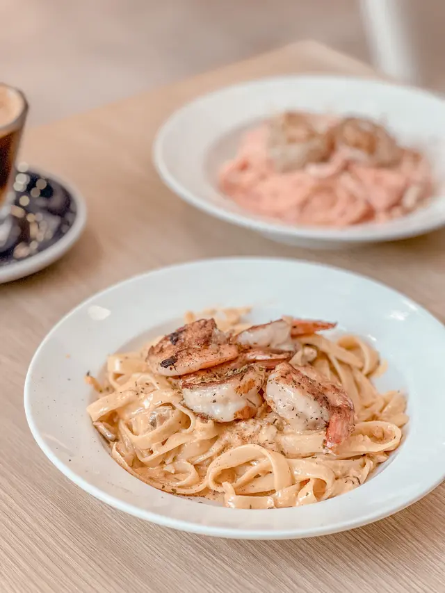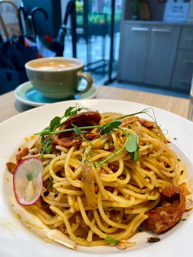 ⭕️北海道帆立貝明太子意粉🍝 $100明太子非常豐富,濃郁掛汁,難怪好多枱都嗌,不過帶子煎得熟咗少少。最近屯門成為我哋嘅新寵,好多小店,而且質素幾幾穩定。今次試埋B Y O B柏御店。(另一間喺紅橋。)⭕️辣肉腸蕃茄乾意粉🍝辣肉腸配蕃茄乾,幾惹味。🧄如果可以多少少蒜油嚟炒個意粉,整體會更香口。🍅⭕️Cappuccino $34質素還可,只係啡底唔突出。Cafe嚟講,可以做得再好啲。⭕️Iced Cappuccino $37質素穩定,奶泡綿密。…查看更多