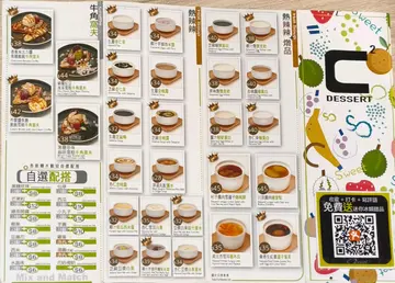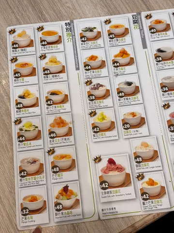 餐牌上主打多个系列甜品,包括有仙草冻、西米露、椰果冰、豆腐花、特别推介及热辣辣甜品等等