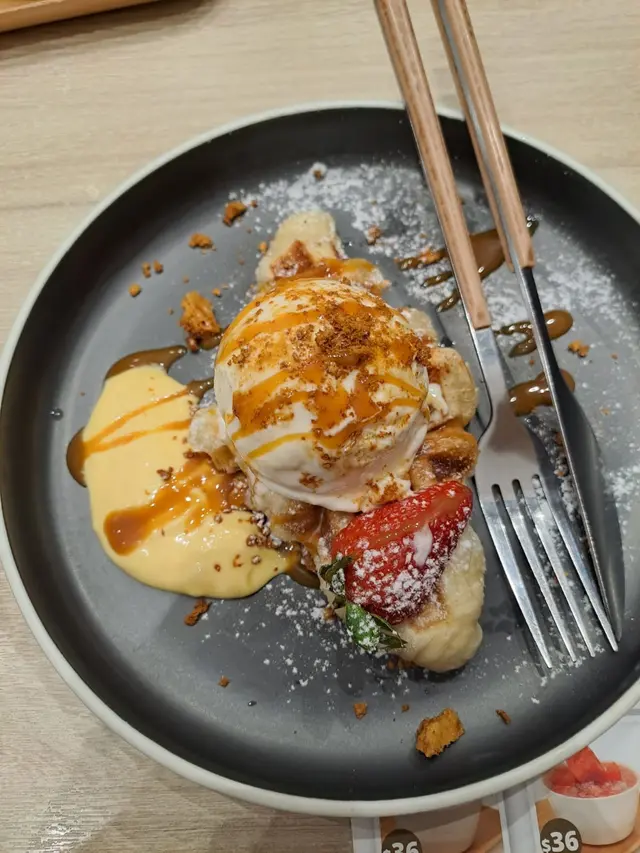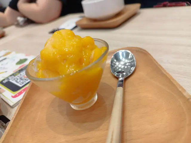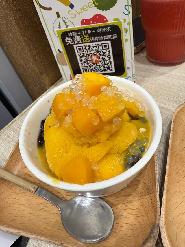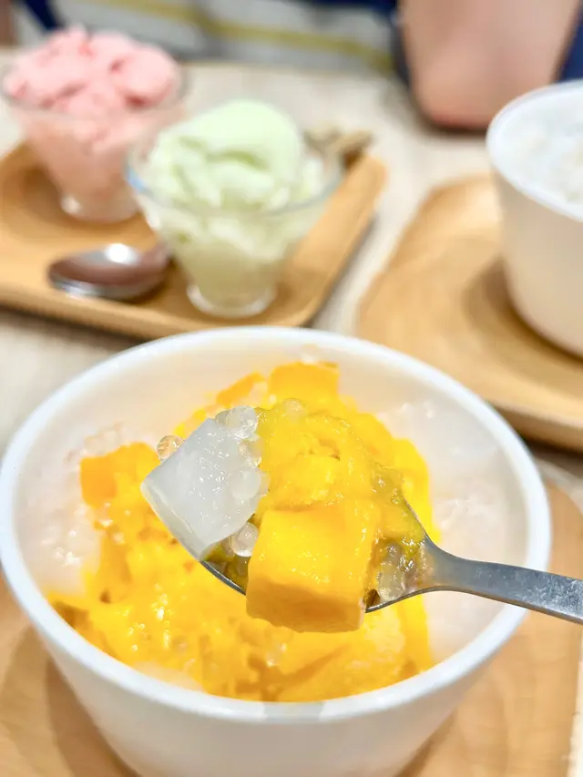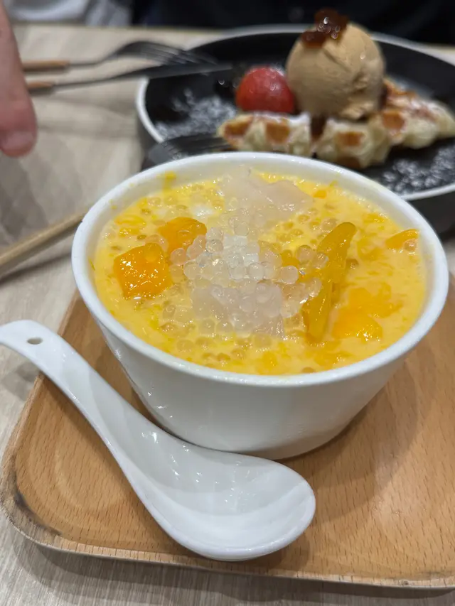 新鮮芒果好甜美,中間有芒果奶昔吉士,口感有啲似雪糕。最底下係口感嫩滑的雙皮奶,充滿奶香