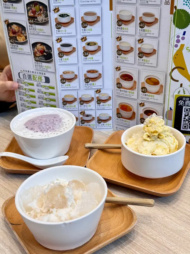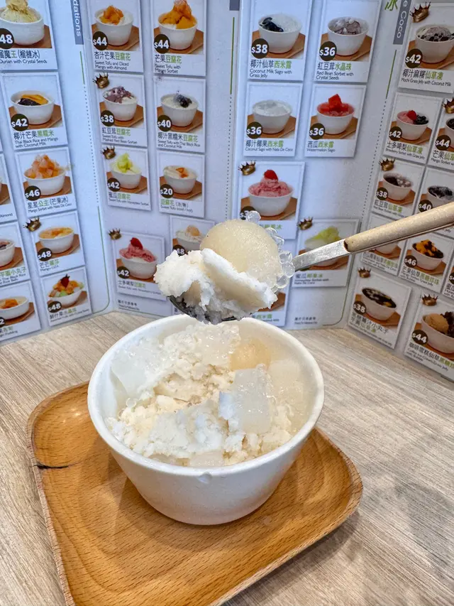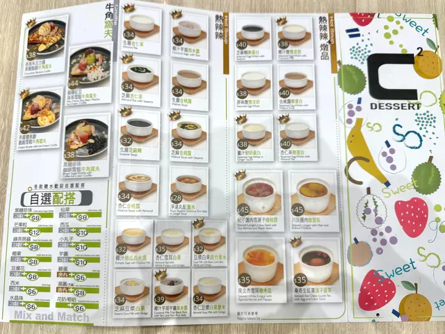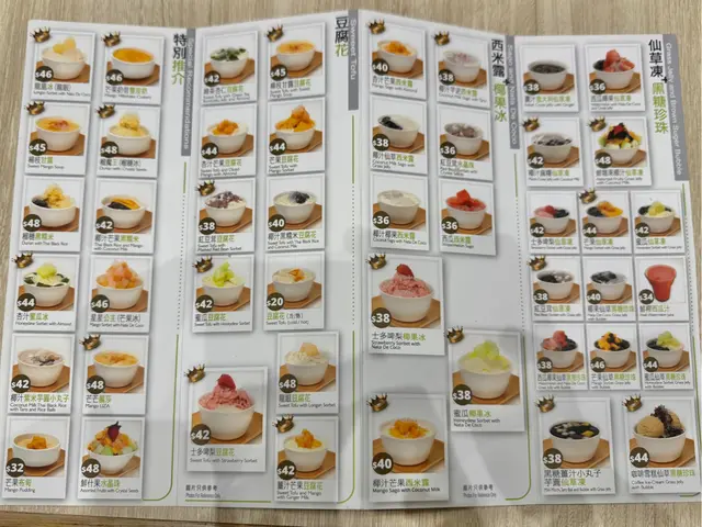 餐牌上主打多個系列甜品,包括有仙草凍、西米露、椰果冰、豆腐花、特別推介及熱辣辣甜品等等