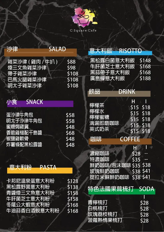 C Square Cafe (鲗鱼涌) 网址: https://s.openrice.com/QrLS0IIOA00 地址: 香港鰂魚涌英皇道1065號東達中心11樓1101室 电话: +852 52941882