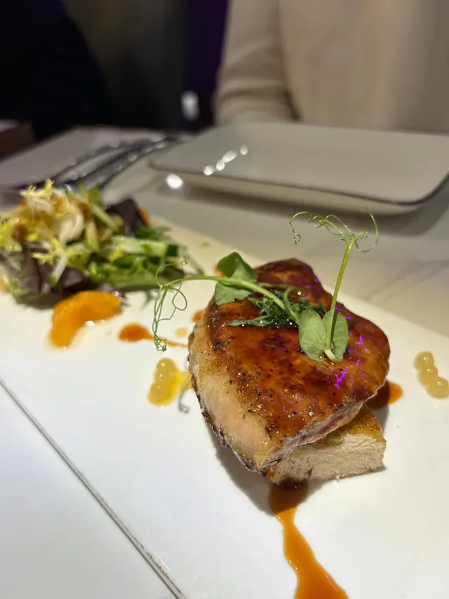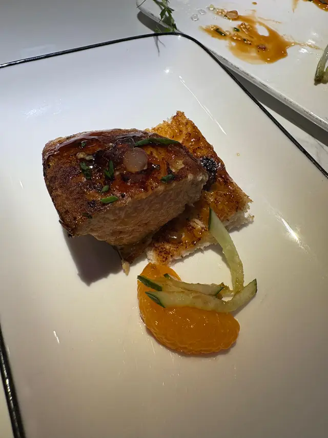 入口鬆化油分充足而且餘韻悠長,配麵包食,一啲都唔覺得膩口。同樣嗰粒法國桔仔又發揮解膩嘅作用。
