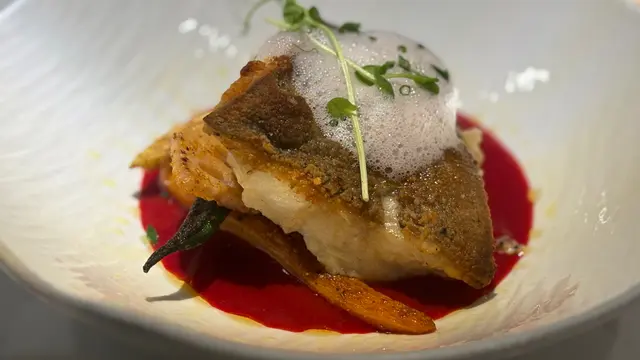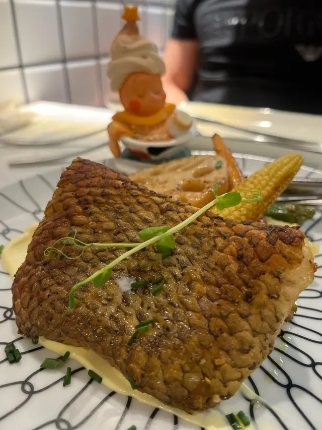 香煎南極橙魚配紅桑子果蓉$268食咗咁多嘢之後對呢間餐廳出品好有信心,於是試埋呢一個期間限定嘅南極橙魚。其實本人對於紅桑子汁一直都反感唔鍾意佢嗰種酸味,但不得不讚廚師嘅功力,將紅桑子清新嘅口味調校得啱啱好,再配埋呢個魚真係越食越開胃。橙魚我之前都未食過,所以冇期待,但係個魚皮煎得好香脆,魚肉實淨,魚味都係一般。主要都係靠個紅桑子汁。
