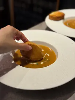 这晚和🐧🐧 朋友仔相约到鲗鱼涌的CA Restaurant & Bar❤️ 想试试他们性价比一流嘅 set dinner及happy hour优惠👍 装横摩登时尚,气氛轻松,不论小聚或约会都很适合🥰Set Dinner前菜是白松茸忌廉汤✅ 汤色奶白,入口幼滑,松茸香气突出但不抢戏,忌廉比例恰到好处,没有腻感,暖胃宜人😋 主菜选了龙虾汁海鲜意粉,卖相吸引。意粉挂满龙虾汁,鲜甜浓郁,虾肉新鲜弹牙,还配有青口和带子,份量充足❤️ 另外单点追加了扒美国安格斯西冷8安士😋只需加$38就可以升级套餐👍 西冷肉质厚切,油花分布均匀,煎至五成熟,外脆内嫩,肉汁丰富😚 佐以黑椒汁或海盐都各有风味🥰 最后来一客朱古力心太软作结🤩 蛋糕外层松软,内里朱古力浆流心,配雪糕一齐吃,香浓不腻,是完美的ending🌟 值得一提的是,happy hour时间(下午四点至七点),红酒、白酒买一送一🥂 点了两杯红酒,果香明显,单宁适中,配牛扒非常合拍❤️ 酒类选择不少,价钱合理,性价比高👍 …Read More