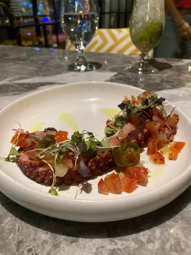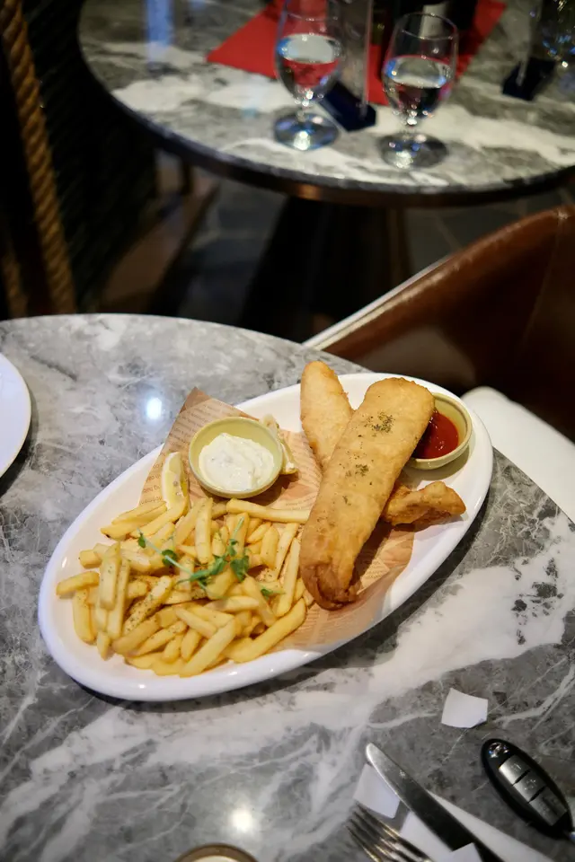多謝好友在「Cabana Breeze」為我安排慶生午餐,餐廳環境真的不錯,有戶外和戶內用餐區,相信晚上亮燈後更添華麗!蒜蓉炒雜菜~炒得很香,味道也好。沙律~不過不失。磨菇忌廉汁扁麵~忌廉汁非常香滑,整體而言,十分不錯!炸魚薯條~炸魚外不夠脆,炸漿太厚,吃到一團粉漿,魚肉鬆散,十分販筆,炸魚薯條份量頗多,為免浪費食物,我們勉強吃了兩塊炸魚,餘下一塊真的嚥不下了!餐飲和甜品都不錯,很多謝餐廳為我播送生日音樂和祝福!…查看更多