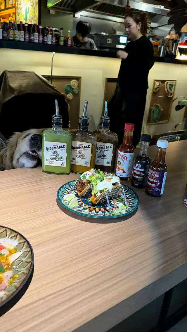 好味嘅地方係值得一去再去,尤其係好嘅Pet Friendly餐廳更加會去多幾次都唔嫌多。帶狗狗一齊去北角玩,唔洗諗就一定係要去CACTUS依個墨西哥菜午餐兼勁打卡。今次我地係星期六嚟,未到中午十二點就已經座無虛席 ,室內同半室外都坐滿客人同狗狗,令到成個環境都好熱鬧。(因為太多人,所以唔太方便影環境相)我地就叫左兩個Lunch Set,然後Upgrade左配有餐湯、沙律同Mocktail。當然唔少得加配埋墨西哥著名小食Taco啦!先嚟是日餐湯係番茄湯,好濃香嘅番茄味,入口酸酸甜甜,好開胃。沙律都好則清新爽口,唔錯。Mocktail方面我地就叫左兩杯飲品都好有特式, Obsess就係由石榴汁再加上蘋果汁,當然佢嘅重點係下層係手工制嘅青檸啫喱,有得食又有得飲,令到整個感覺好好清新。而Aloof就係以番石榴同烏龍茶為主,入口都好特別,重點就落係杯邊梅粉,所以飲嘅好得意更加解膩。餐前小食就嚟手撕豬同燉牛肉嘅Tacos,用脆卜卜熱辣辣嘅粟米片包住滿滿嘅手撕豬同燉牛肉,再加埋啲配菜,入口好味得嚟仲好滿足添。主菜方面先嚟蟹肉帶子龍蝦汁寬蛋麵配牛油燒琵琶蝦,睇賣相已經好豐富,入口仲覺得好味。寬蛋麵嘅口感厚實得嚟又好彈牙,龍蝦醬汁非常鮮甜,仲有帶子同埋三文魚子,不得不提佢嘅蟹肉份量都真係好多,再加埋非常新鮮琵琶蝦,整個配搭加埋一齊真係非常好食。另一個主菜係燒黑毛豬鞍架,黑毛豬鞍架肉質非常軟熟,juicy得嚟又好有豬味,加埋豬鞍架上滿滿嘅香草香料,成個感覺真係好出。再加埋清清甜甜嘅燒菠蘿,令人非常回味呀!堅Pet Friendly當然唔少得主子份,Pet Menu嘅提供咁主子唔止係陪食打卡咁簡單,齊齊開心食飽飽。…查看更多