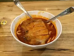 午市时间途经,见环境不错入内一试。人不多,座位阔偌,播著音乐,令人舒畅。餐厅的选择很多元化,咖喱,喇沙,韩式,西式... 不难拣到想要的。午餐连餐饮。特别的的餐饮无限添,去饮品区自己搞掂。汽水,茶包,还有机打的咖啡,豆浆,朱古力。按下了cappucino 的按钮,立刻打了杯冇乜泡,味道怪怪的cappucino 来。点了的喇沙猪排乌冬同样唔掂。乌冬是超级市场10蚊四包的质素。本来最期望的喇沙汤底,跟喇沙味即食面味精粉造出来的没两样。没椰香。最怪的是加了一只冬菇和小许芽菜,除此其他都没有了,没有虾米,没有豆卜,碗底仲要有啲未溶嘅粉。更肯定,这根本就是即食面汤底。…查看更多