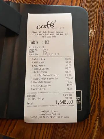 位于香港大学站附近的 Cafe 2 Oyster and Grill,是一间充满欧陆情调的西餐厅❤️ 店内格调优雅,温暖的烛光映照著木质餐桌,气氛浪漫而不造作,非常适合拍拖约会或庆祝特别日子🥰 开场先来一客Castillo 生蚝,鲜味十足、带有淡淡海水的矿物香气,一口滑入喉头,味蕾瞬间被唤醒😋 接著是Garlic Shrimp,蒜香浓郁但不呛,虾肉弹牙,每一只都煎得恰到好处👍 Wagyu Carpaccio是另一道亮点,薄如纸的和牛片搭配帕玛森芝士和橄榄油,香气层次丰富✅ 主菜中推荐Strozzapreti Truffle,松露香扑鼻,手工意粉烟韧有嚼劲,浓郁的奶油酱与松露完美融合😚 Wagyu Sirloin(10 oz)则是肉食爱好者的最爱——外层带焦香、内里粉嫩多汁,油脂分布均匀,令人一试难忘🤗 甜品方面,Chocolate Fondant热腾腾出炉,轻轻切开就有浓郁的朱古力浆流出😍 Brownie with Ice Cream 以铁板送上,即场淋上朱古力汁,味道浓香诱人🌟 蛋糕绵密扎实,配上冰淇淋的冰热对比,结尾非常满足😚 饮品方面,Cookie and Cream Deluxe香滑甜美,像是大人版的奶昔,而Bright Crystal 则清爽果香,为丰富的一餐划上完美句号😎Located near the University of Hong Kong Station, Cafe 2 Oyster and Grill is a charming European-style restaurant that offers both elegance and warmth. With candlelight flickering gently on wooden tables, the ambiance is intimate—an ideal spot for date nights or quiet celebrations. The meal began with the Castillo Oysters—fresh, briny, and bursting with ocean flavor. Next came the Garlic Shrimp, perfectly seared with a bold yet balanced garlic aroma, each bite juicy and satisfying. The Wagyu Carpaccio followed, delicate and paper-thin, drizzled with olive oil and a sprinkle of Parmesan, creating a sophisticated harmony of flavors. For the mains, the Strozzapreti Truffle stood out: creamy, aromatic, and indulgently rich, every strand of handmade pasta coated evenly in truffle sauce. The Wagyu Sirloin (10 oz) was equally impressive—tender inside, beautifully charred outside. Each slice melted on the tongue, a celebration of quality beef done right. Desserts were as delightful as the mains. The Chocolate Fondant oozed molten chocolate the moment it was cut open, while the Brownie with Ice Cream offered a heavenly contrast of warm and cold, fudgy and smooth. For drinks, the Cookie and Cream Deluxe was a dreamy, dessert-like treat, while the Bright Crystal refreshed the palate with its light, fruity notes. Overall, Cafe 2 Oyster and Grill balances atmosphere, flavor, and service with grace. Whether for a romantic dinner or a simple evening unwind, it’s a hidden gem worth returning to. …查看更多