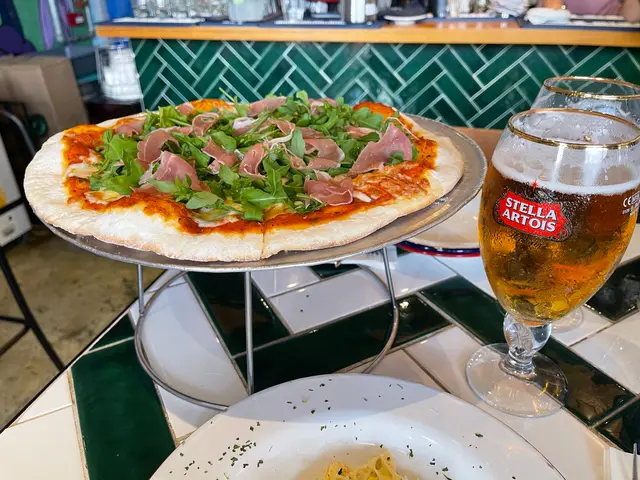 在享受美食的同时,还能欣赏到维多利亚港的绝美海景。Cafe Boheme的POLLO PIZZA堪称一绝。当披萨端上桌的瞬间,浓郁的香气扑鼻而来,瞬间勾起食欲。饼底是意式薄脆风格,边缘微微隆起,烤至金黄酥脆,拿在手中轻轻一折,「咔嚓」一声,尽显其酥脆质感。 PROSCIUTTO di Parma pizza则是将地道的意大利风味展现得淋漓尽致。披萨上铺满了来自意大利帕尔玛的生火腿,薄如蝉翼的火腿片色泽诱人,纹理清晰可见。生火腿独特的咸香风味在舌尖散开,那浓郁醇厚的味道带著岁月沉淀的气息,瞬间将人带入意大利的美食世界。薯条粗细均匀,色泽金黄诱人。一口咬下去,外酥里嫩的口感让人惊艳不已。外皮酥脆得如同薄壳,轻轻一咬便发出清脆的声响,而内里的土豆则软糯绵密,散发著浓郁的土豆香气。 …查看更多
