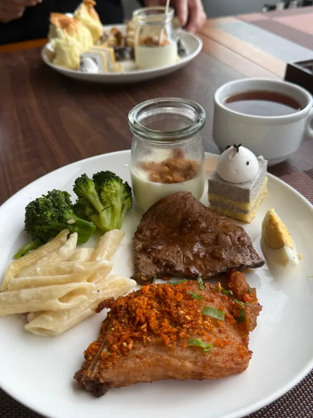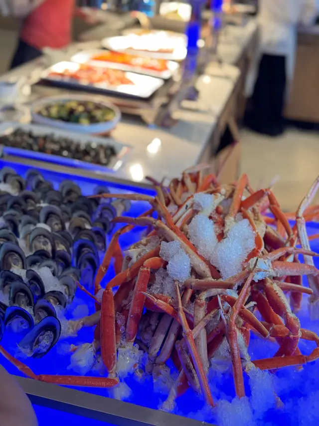放假去愉景灣酒店食buffet, 用kk notebook夜晚buffet, 夜晚平均一個人都係300多元。呢度有好多嘢 食 有冷盤海鮮 生蝦 長腳蟹 麵包蟹。但我最鍾意係佢啲中菜同甜品。中菜推介係南乳炆豬手 好腍好入味甜品推介係日式芝士 餅 和意大利cheesecake。一般的三文魚 青口 羊架和西冷都有。食物種類選擇都幾多。仲有個無敵海景, 食完之後仲可以任食häagen-dazs雪糕。生果方面有菠蘿車厘茄西瓜火龍果。選擇都幾多…查看更多