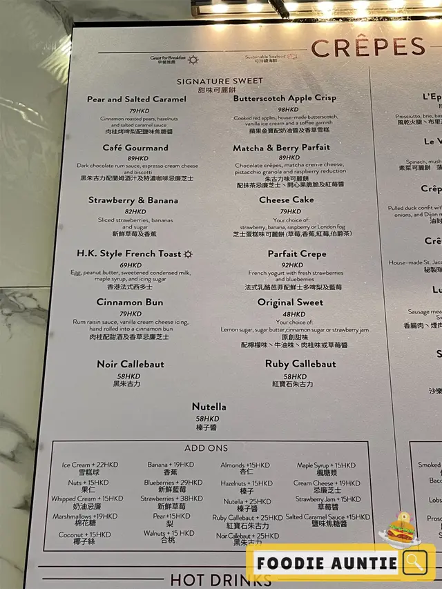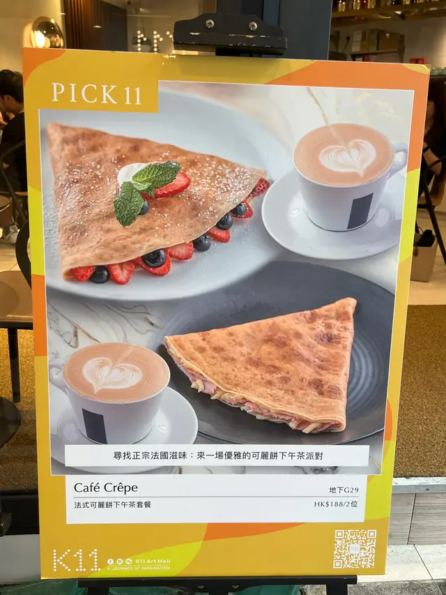Café Crêpe (K11購物藝術館) (尖沙咀) 网址: https://s.openrice.com/QrLS01LKA00 地址: 香港尖沙咀河內道18號K11購物藝術館地下G29號舖 电话: +852 28992286