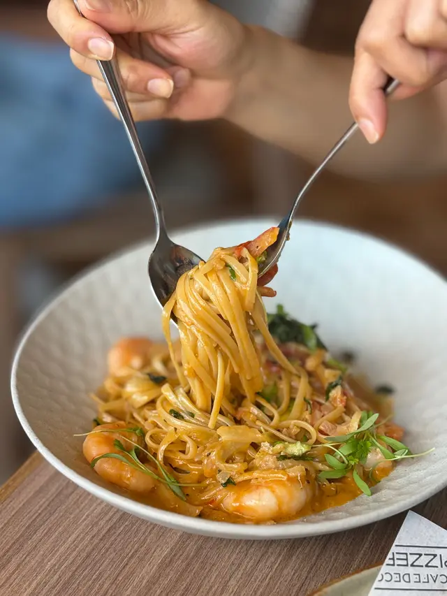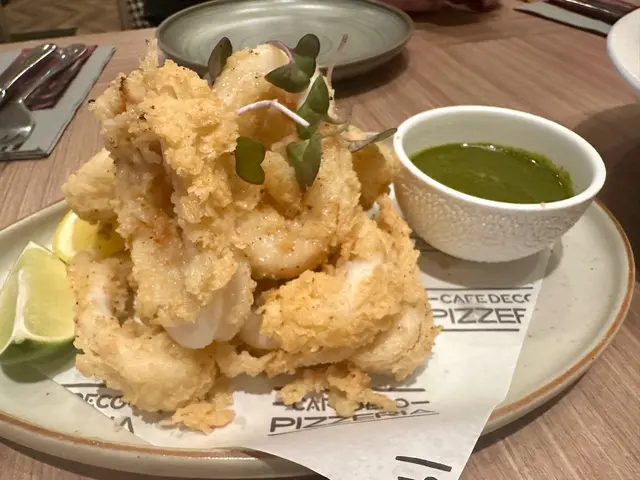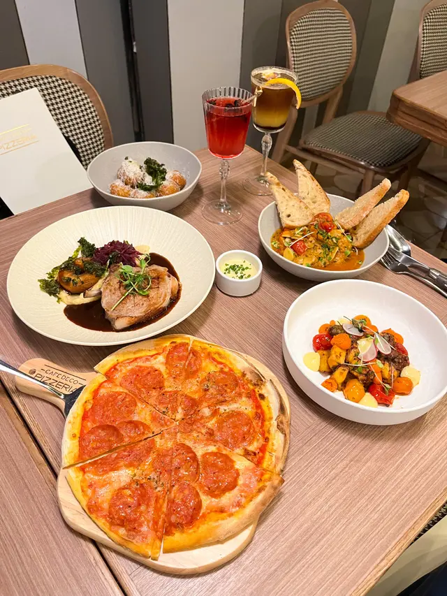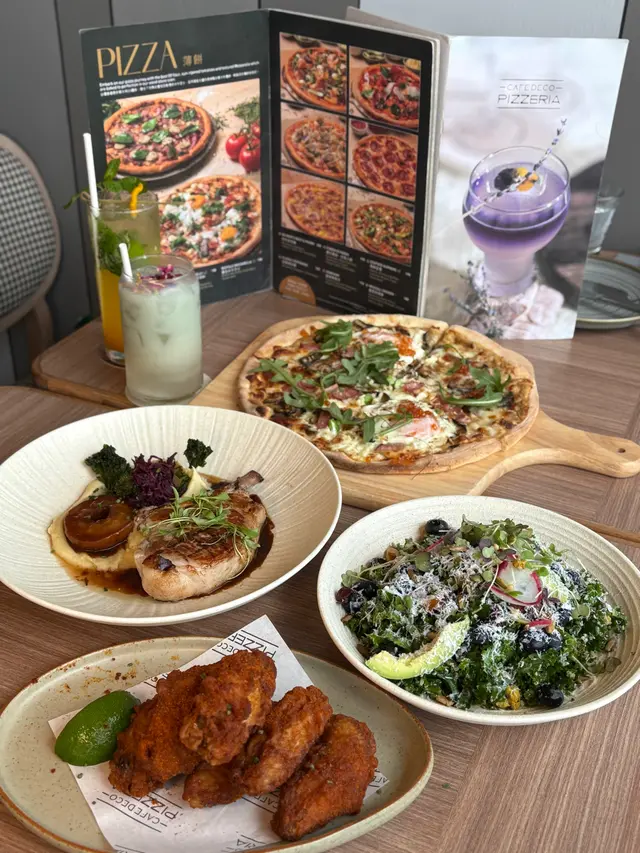 今次去圓方睇戲前先食個晚飯,見到對面嘅Cafe Deco Pizzeria新派西式餐廳原來重新裝修,令人眼前一亮!😎 我同朋友都決定即係入去食先~ 餐廳環境幾Chill,餐廳裝潢簡潔,木系柔和風格,餐廳採用半開放式廚房,讓客人可以觀賞食物新鮮製作的過程,咁啱我哋嘅餐桌位置仲可以望住樓下的溜冰場睇人溜冰~💃🏻🛼 1. 🎃炸南瓜芝士丸 ($98)即叫即炸熱辣辣,有6大粒,上面刨了大量芝士,一咬開有滿滿的芝士南瓜蓉,再配上檸檬蒜蓉蛋黃醬,非常夾!😋2. 🦐橄欖油蒜香大蝦 ($128)鮮蝦大大隻,新鮮爽彈,加上大量薯片的蒜香橄欖油,帶有香濃蒜香味,味道微辣,再配上香脆的酸種麵包一齊食,非常滋味醒胃,而且份量都幾多!😎3. 🥘Dinner Menu for 2 ($598)這個Dinner Menu足夠兩人份量,可以自選🥗前菜、🍕 8吋薄餅、主菜、🍰甜品,及☕️餐飲,我們選了以下的菜式:前菜:西班牙🇪🇸風味烤八爪魚🐙🐙八爪魚口感豐富,彈牙腍軟,配菜還有有蕃茄仔🍅、橄欖🫒及薯仔🥔,色彩豐富🌈,用上紅椒堅果醬Romesco及蛋黃醬,味道甜甜辣辣,為八爪魚提鮮,非常開胃!😙🍕8吋薄餅:經典辣肉腸餐廳用上意大利製的頂級Wood Stone品牌石焗爐焗製,用上優質意大利Caputo 00麵粉製作餅底,有著傳統的意大利風味,Pizza烤到幾香口又唔油膩,批邊香脆煙靭,薄餅鋪滿🍖辣沙樂美腸、🧀水牛芝士及🍅蕃茄醬等,非常惹味!😍🐷慢煮美國穀飼豬鞍慢煮豬鞍煎到剛剛好,外表焦香,肉質軟嫩,還緊緊鎖住肉汁🤤,廚師慢煮溫度應該控制得非常好!👍🏻 配上焦糖蘋果及紅酒燴椰菜絲,可以減低油膩感,薯蓉亦香滑,帶有牛油香,整體好有驚喜!🤩🍵抹茶芝士蛋糕🍰淡淡的抹茶味,芝士味濃郁,再配上雲呢拿雪糕、脆脆、士多啤梨、紅豆蓉及蜜柑皮,個人認為芝士蛋糕略為甜了一些~🍫朱古力香橙咖啡🥃 用上朱古力醬、橙汁及Espresso 調製而成,形成漸變的顏色,味道沒有苦澀味,好靚又好飲!☺️🍹The Darker Secret 暗紅之秘 用上氈洒、洛神花糖漿、檸檬汁、梳打水調配,味道甜甜酸酸,清新又解渴!😆…查看更多