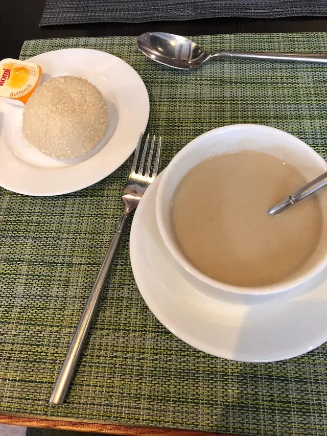 要來這一間小店,要一點緣份。聽說這裡是一個 training centre,食物不錯,一直想來試試。可惜之前來過兩次,一次無開,一次 elavuation day唔營業。莫非要三顧草蘆?今天不是刻意來,卻剛好有開,又有位。舖面不大,就三十個位置左右。一入門口就一眼睇晒。門口右邊有個大電視,剛好在播新聞,如果它走的是 cafe路線,非常格格不入。今天有四款午餐。點了烤三文魚柳。餐湯是露筍湯,晝了貓貓,湯本身做得不錯,濃淡適中,after taste是微甘的。主菜是三文魚,剛熟,一口咬下去非常滑,表面煎香了,又不膩,處理得非常好。薯蓉和伴碟小甘筍不過不失。茨汁是黑松露忌廉,有松露香,又不會太搶,滿意。餐飲要了 english tea,喜歡的濃度,沒有多要一個茶包,滿足就好。今天樓面都是經理一手包辦,服務很好。學生放假?不知道。…查看更多