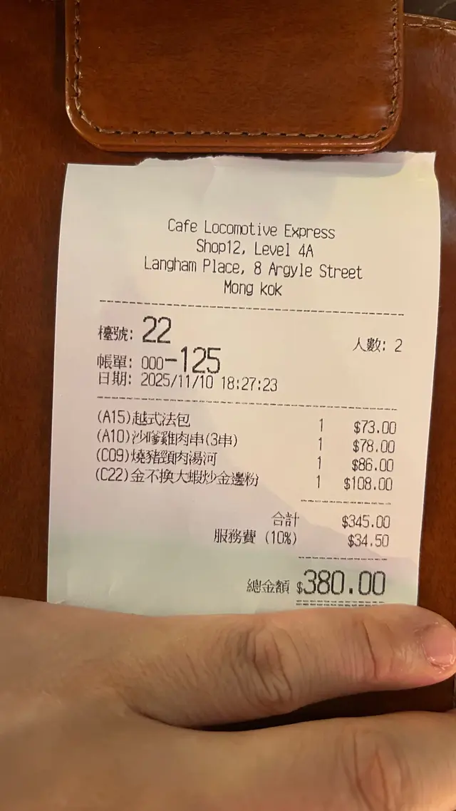 Cafe Locomotive Express (旺角) 网址: https://s.openrice.com/QrLS0AyI400 地址: 香港旺角亞皆老街8號朗豪坊4樓12號舖 电话: +852 23682008