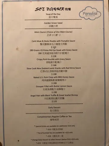 系OpenRice book 左19/3晚上六点九,职员前一日打俾我confirm booking,好清楚交代只会留位留10分钟,惊自己同朋友改唔到,我临时临急叫佢哋改7点3,完全无炸型,态度非常好👍🏻!!!由于帮朋友庆祝生日,我麻烦佢哋帮我系甜品度加块生日牌,职员好有心,同我讲佢哋无生日牌,但好乐意帮我系碟度写生日快乐。唔系第一次食cafe paradise, 几次都觉得好味,特别系黑松露天使面! 当日嗌左黑松露天使面,德国咸猪手两个餐,食物保持一贯水准, 好入味! 最后嗌左blueberry cheese cake , 职员将摆蛋糕嘅碟画得好靓,仲准备埋腊烛, 仲好热情同我朋友讲生日快乐🎂,真系好感动! 所以,呢间系好有心嘅舖头, 好欣赏佢哋嘅服务同食物。 知道佢哋会搬去太子,一定会再去支持👍🏻👍🏻👍🏻👍🏻👍🏻👍🏻👍🏻