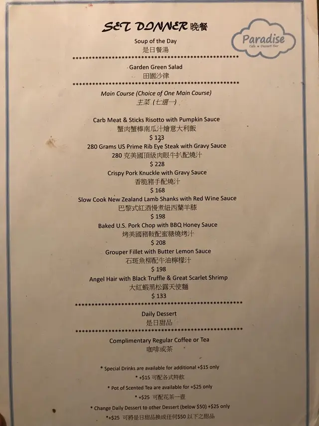 係OpenRice book 左19/3晚上六點九,職員前一日打俾我confirm booking,好清楚交代只會留位留10分鐘,驚自己同朋友改唔到,我臨時臨急叫佢哋改7點3,完全無炸型,態度非常好👍🏻!!!由於幫朋友慶祝生日,我麻煩佢哋幫我係甜品度加塊生日牌,職員好有心,同我講佢哋無生日牌,但好樂意幫我係碟度寫生日快樂。唔係第一次食cafe paradise, 幾次都覺得好味,特別係黑松露天使麵! 當日嗌左黑松露天使麵,德國咸豬手兩個餐,食物保持一貫水準, 好入味! 最後嗌左blueberry cheese cake , 職員將擺蛋糕嘅碟畫得好靚,仲準備埋臘燭, 仲好熱情同我朋友講生日快樂🎂,真係好感動! 所以,呢間係好有心嘅舖頭, 好欣賞佢哋嘅服務同食物。 知道佢哋會搬去太子,一定會再去支持👍🏻👍🏻👍🏻👍🏻👍🏻👍🏻👍🏻