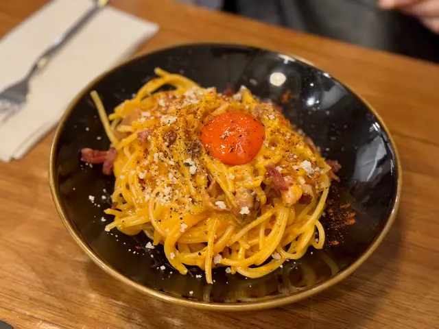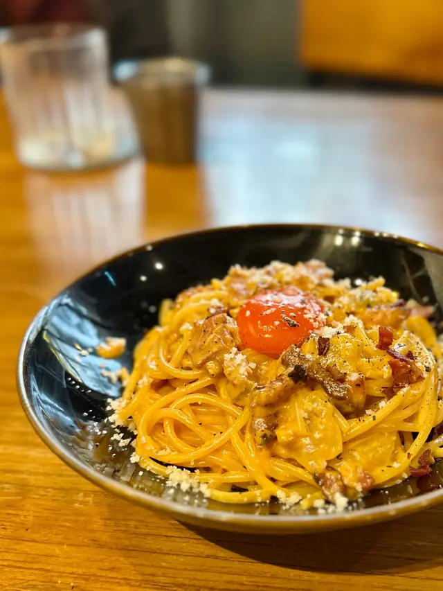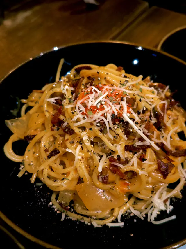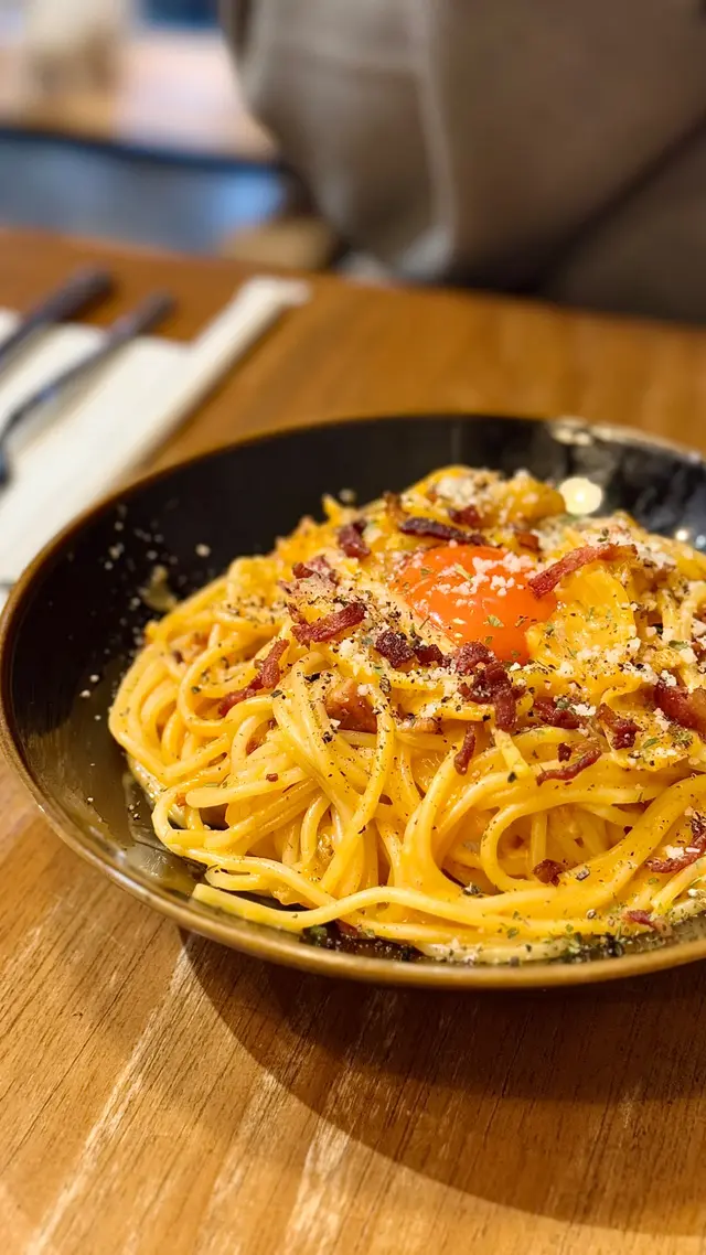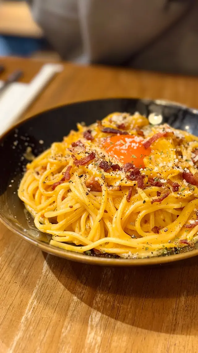 Bookmark 左幾年機緣巧合下今日終於食左🤣👑REVOL 卡邦尼煙肉意粉 $108好好jap的意粉( •̀∀•́)ง係正宗Carbonara會用蛋黃撈意粉風乾豬面頰肉大大粒,充滿咸香🥓煎到好香(˶‾᷄ ⁻̫ ‾᷅˵)忍唔住食埋啲脂肪意粉煙韌彈牙,掛汁內有洋蔥(இ﹏இ`。)仲有芝士碎同黑椒調味睇餐牌有西芹(完全食唔出