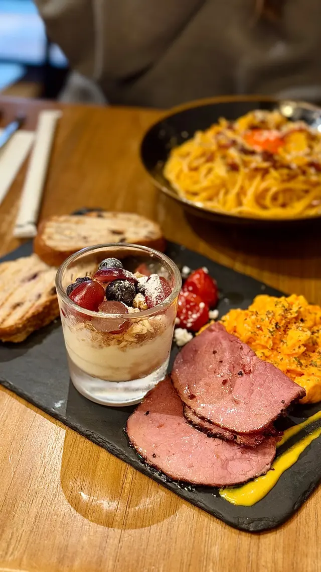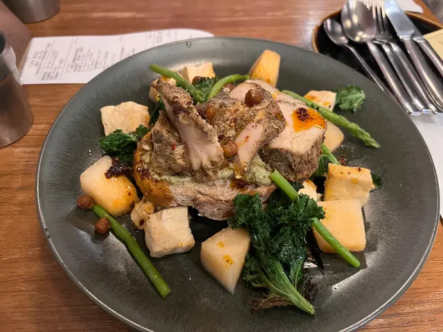 )🍄🟫烤大啡菇·香草蜜漬蛋·南瓜醬意大利飯 $118香草蜜漬蛋有驚喜非常入味而且甜甜的但意大利飯唔太食得出南瓜味反而有種薩莉亞嘅雞肉多利亞feel好食的而且意大利飯唔會煮到好硬適合香港人口味內有醋漬紫椰菜🍞哈密瓜配酸種麵包配慢煮雞肉·烤豆腐·木魚花枝豆醬 $108慢煮雞肉用咗香料醃唔會好嚡羽衣甘藍用類似烤薯片嘅形式所以食起上嚟脆得來又鹹鹹地,好特別烤豆腐睇落似方包好得意,偏乾身比較少食酸種麵包餐廳將佢烘成多士再配以枝豆醬有脆有煙韌哈密瓜夠甜食物上面鋪咗少少自家製卡爾辣椒油食落少少辣有種食緊魚蛋粉嗰隻辣椒油嘅感覺幾特別但唔算好夾(,,> <,,)💚Matcha latte +$12幾濃抹茶味🤎London Fog +$14Earl grey 嘅另一個名長知識(-´∀`-)咁橋出面仲有可愛柴犬\(๑•∀•๑)注意⚠️2:30 last order餐廳營業至18:00Btw有冇人覺得餐廳名有啲似大家樂嘅英文名XD…查看更多